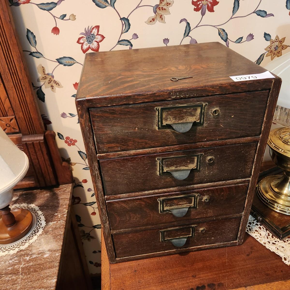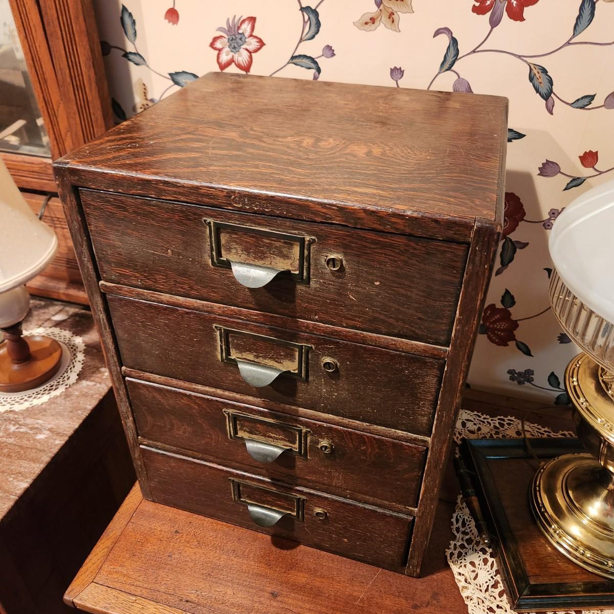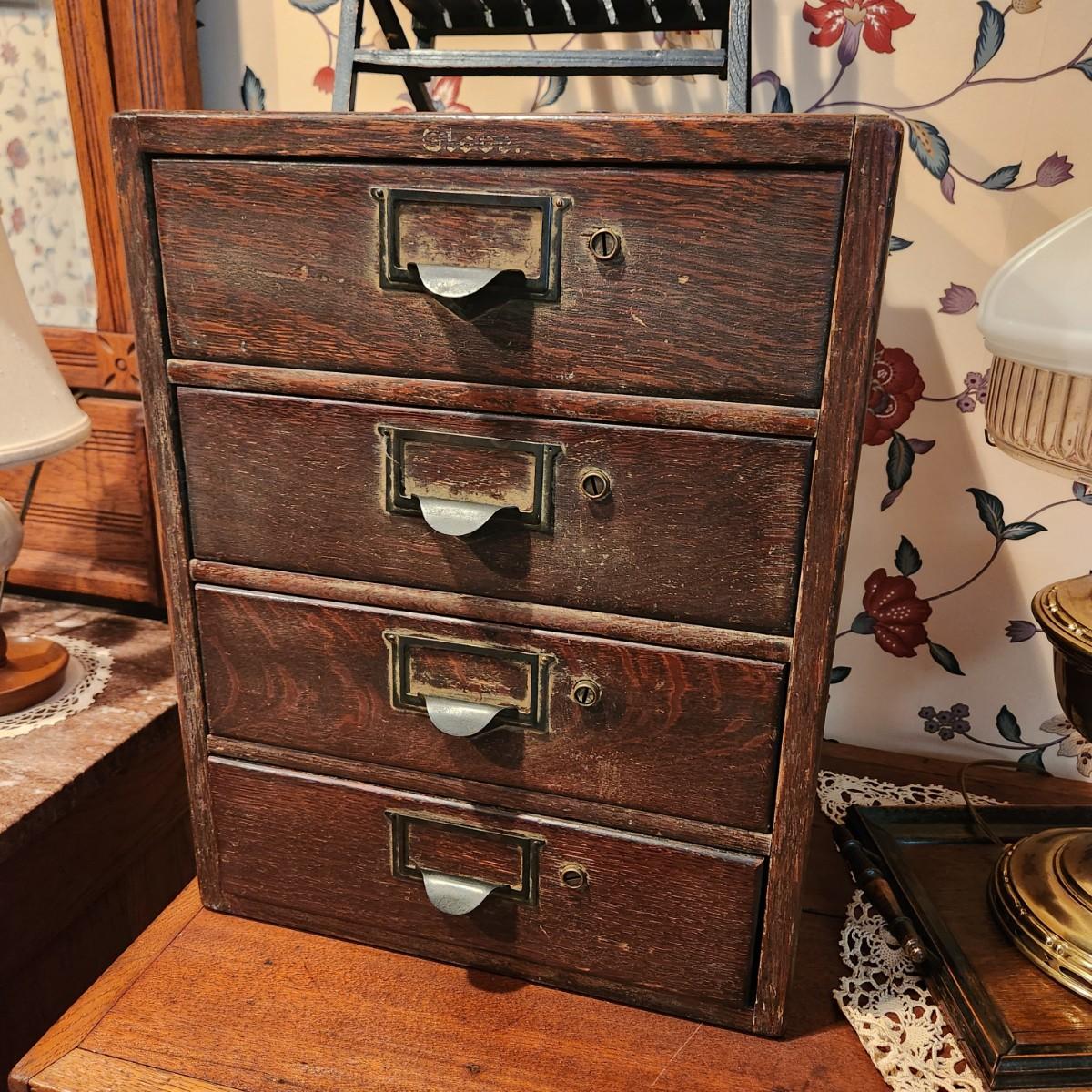 Antique 4 Drawer Wooded Globe Wernicke Letter File Desk Top Cabinet 14x12x18