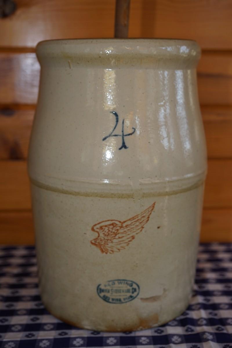 ANTIQUE #4 RED WING STONEWARE BUTTER CHURN W/ORGINAL DASHER