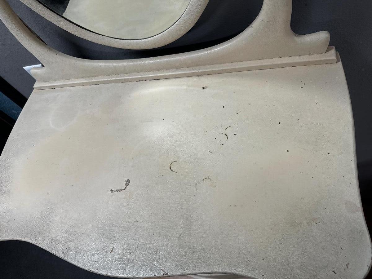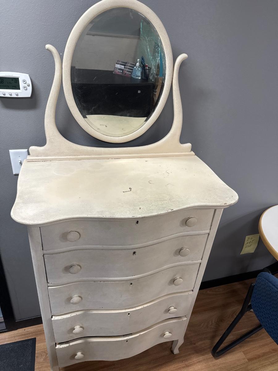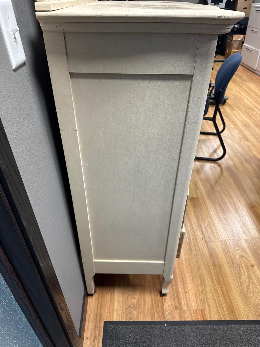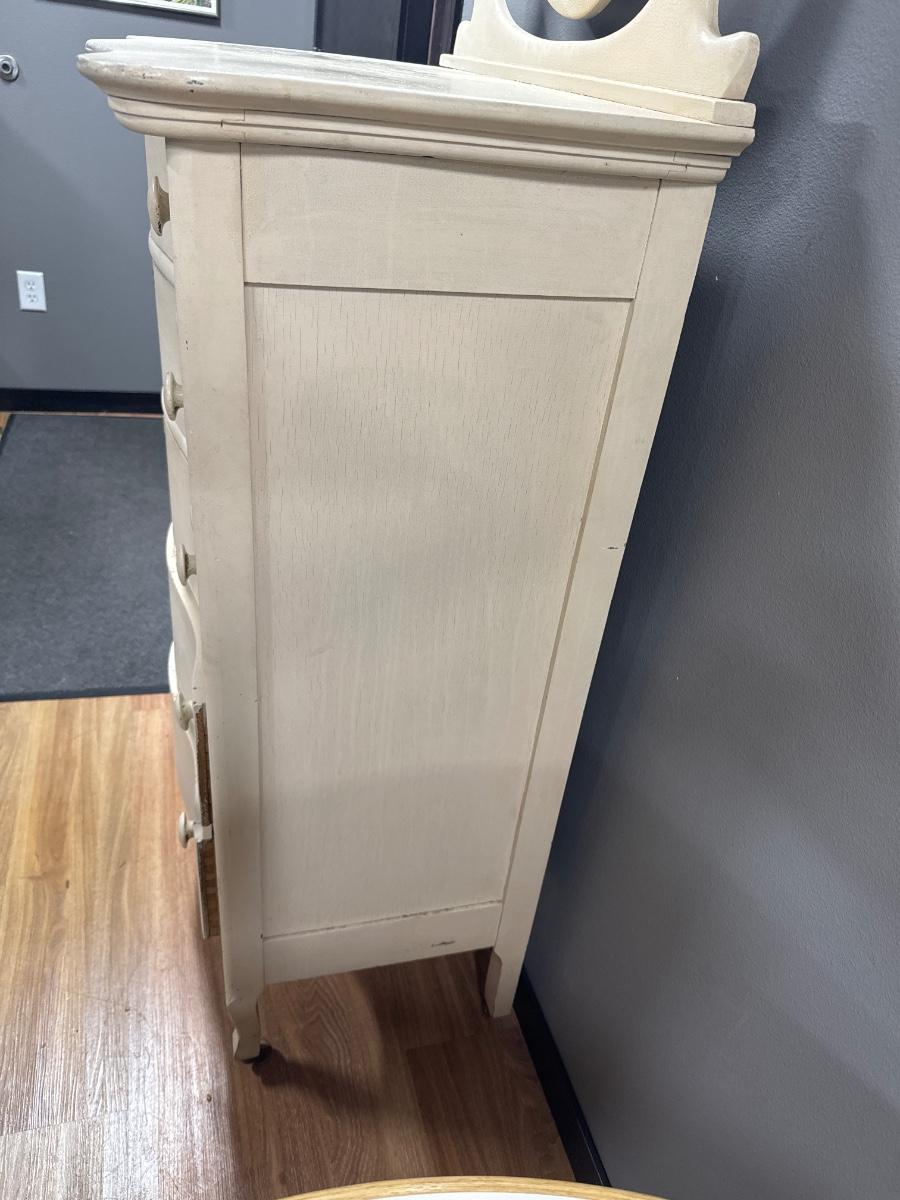 In great condition. Some scratches. Has wheels on the bottom. Dimensions are 47 inches tall without the mirror 72 inches tall with the mirror by 32 inches wide by 18 inches deep.