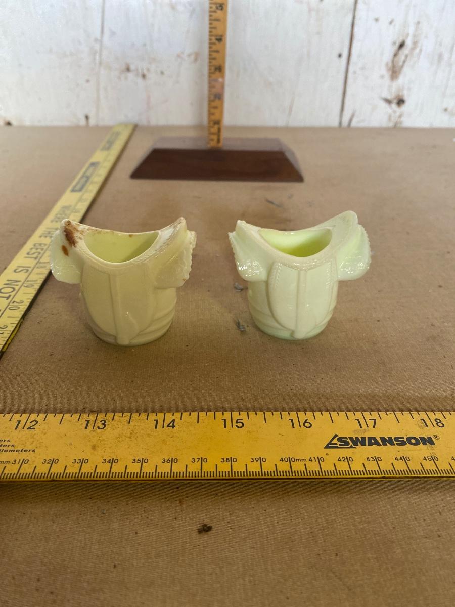 Set up to 1970s vintage saddle custard glass toothpick holders