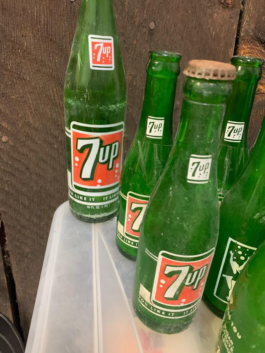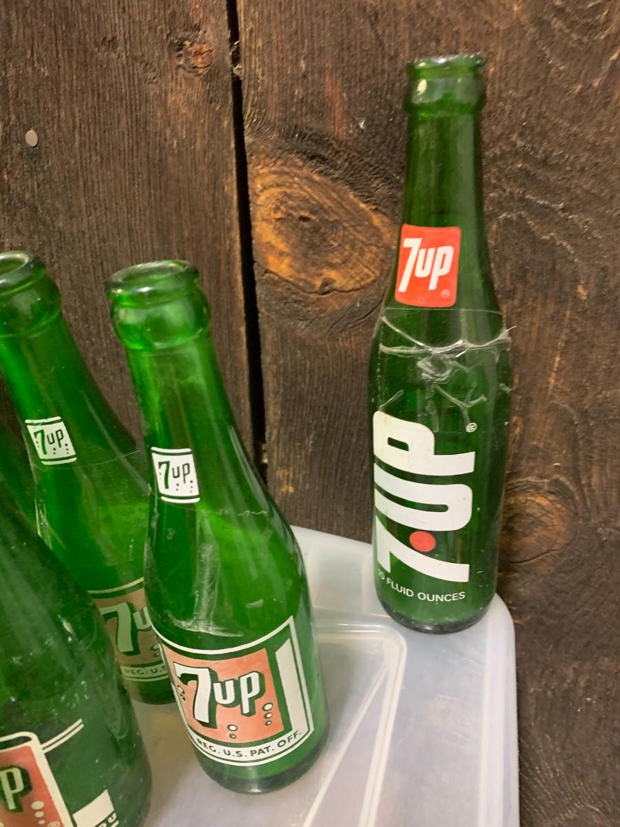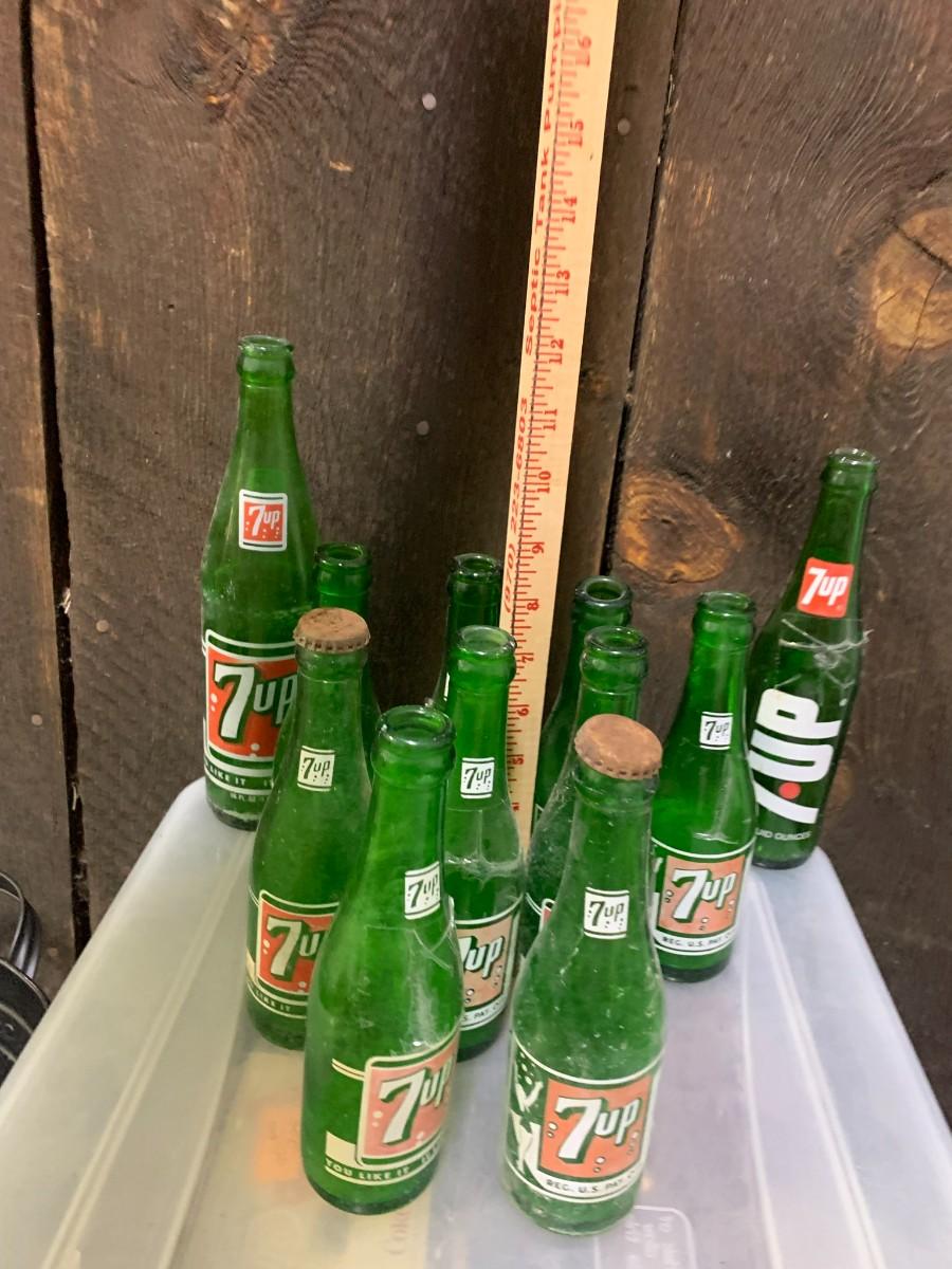 1940 / 50s and 60s 7 Up Green Glass Bottles - Winning Bid Buys All Items Shown, All Item(s) are Sold As Is - Photo's Are Part of the Description - Pickup by Appointment, or Shipping is Available (Buyer Pays)
