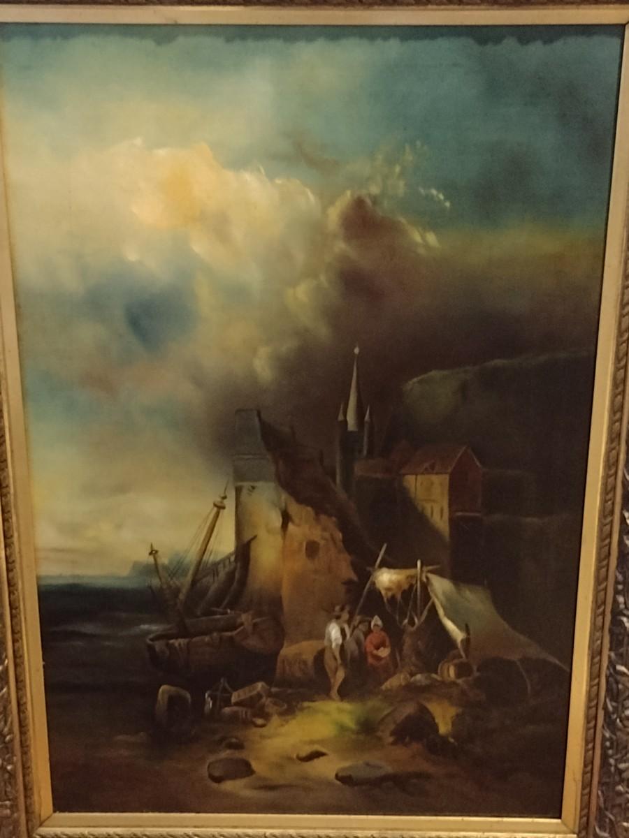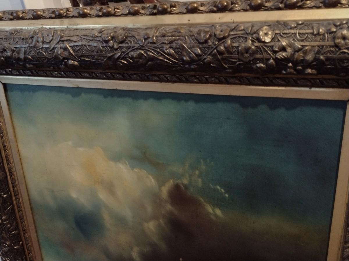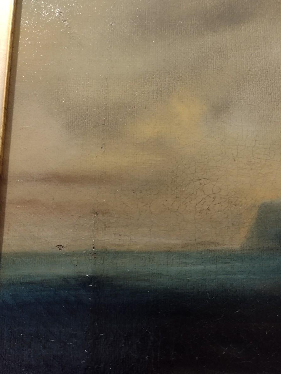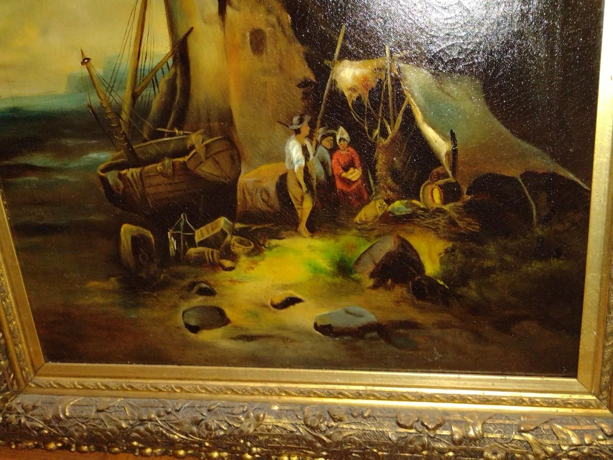 19th Century Dutch Oil on Canvas Shipwreck Theme Painting Gilt Wood Frame