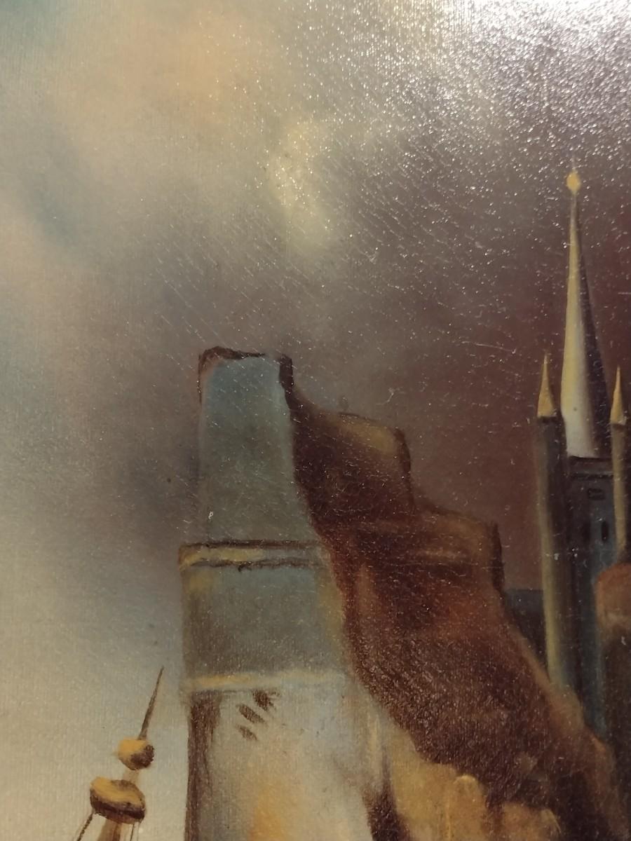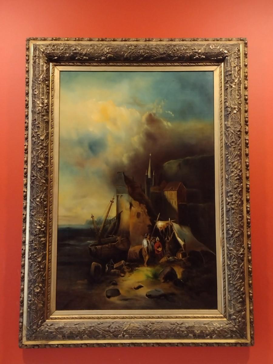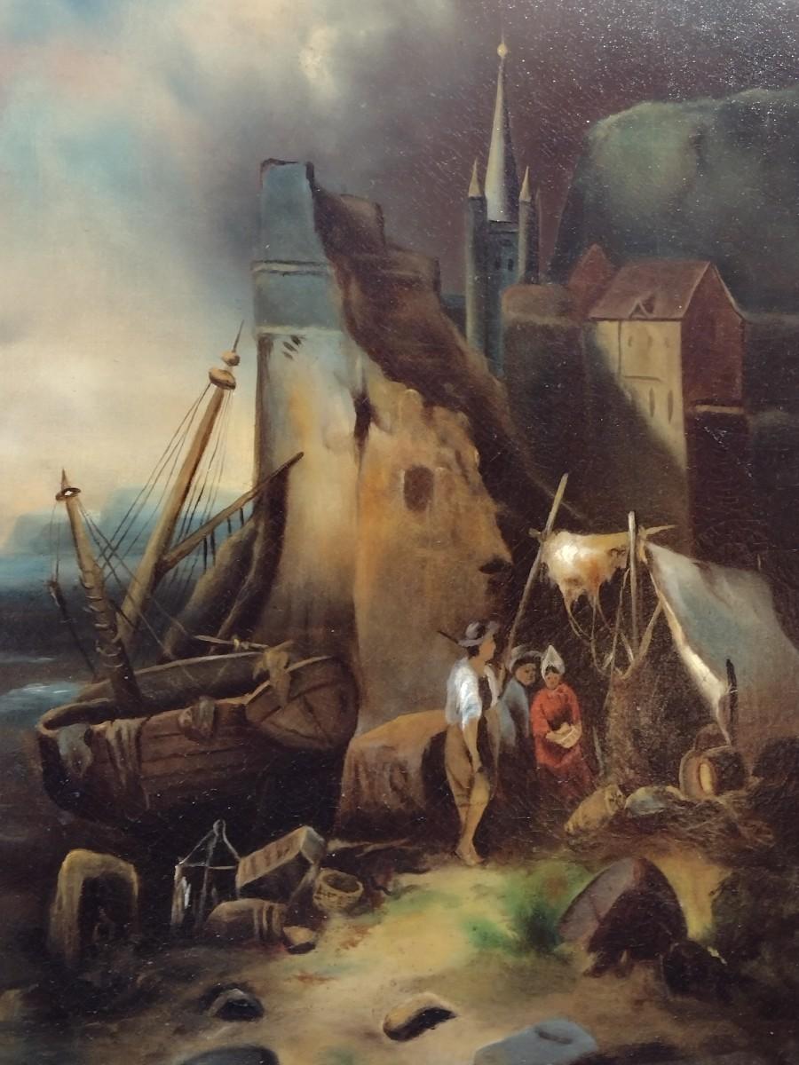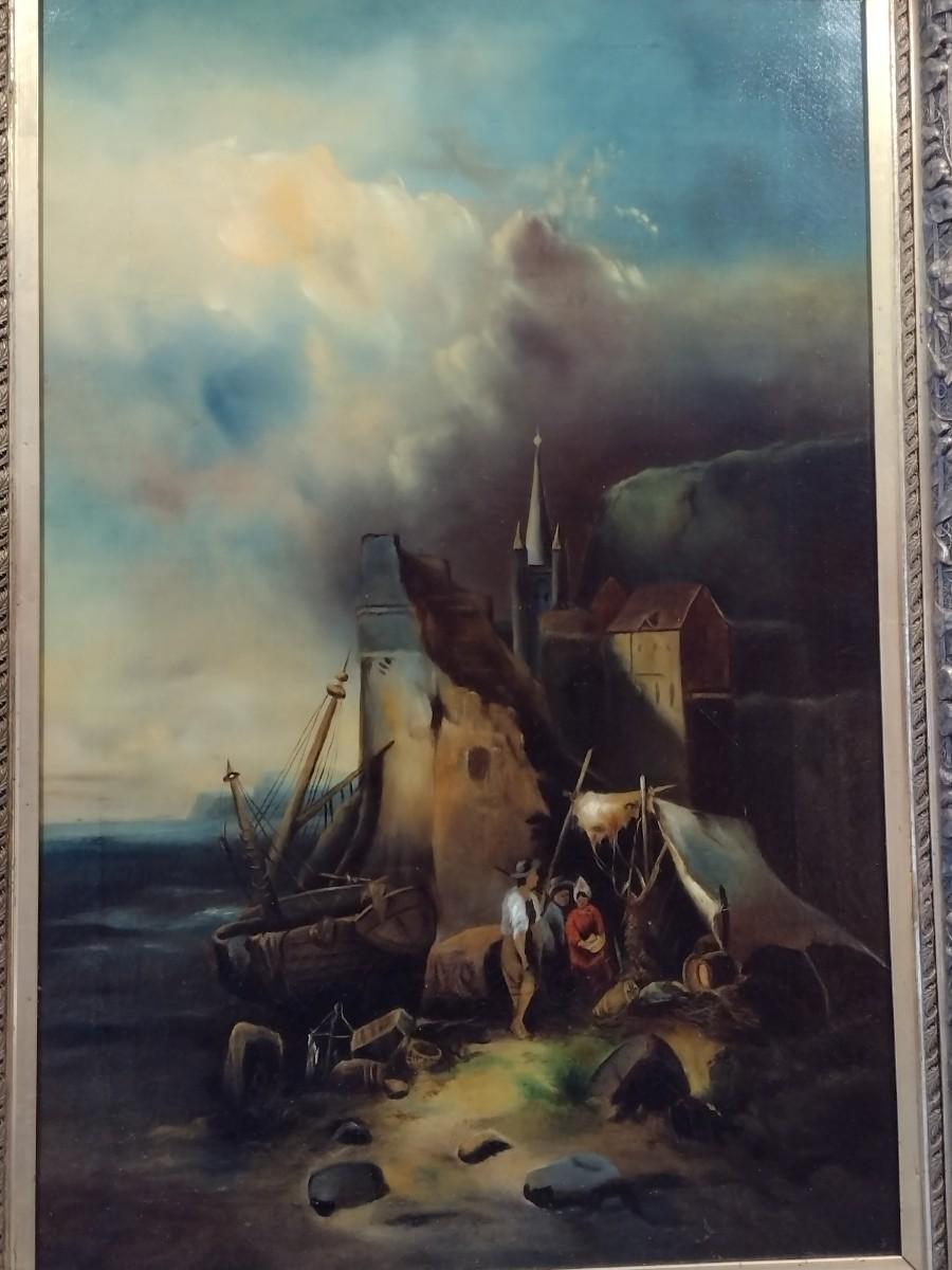 19th Century Dutch Oil on Canvas Shipwreck Theme Painting Gilt Wood Frame