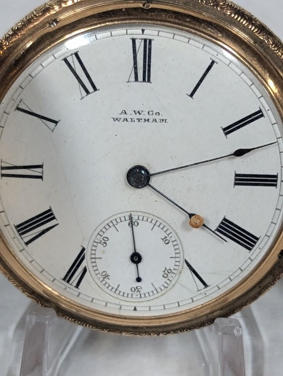 Antique A. W. Co. Waltham Pocket Watch Marked On The Inside Of The Case