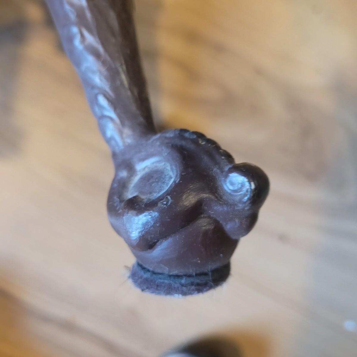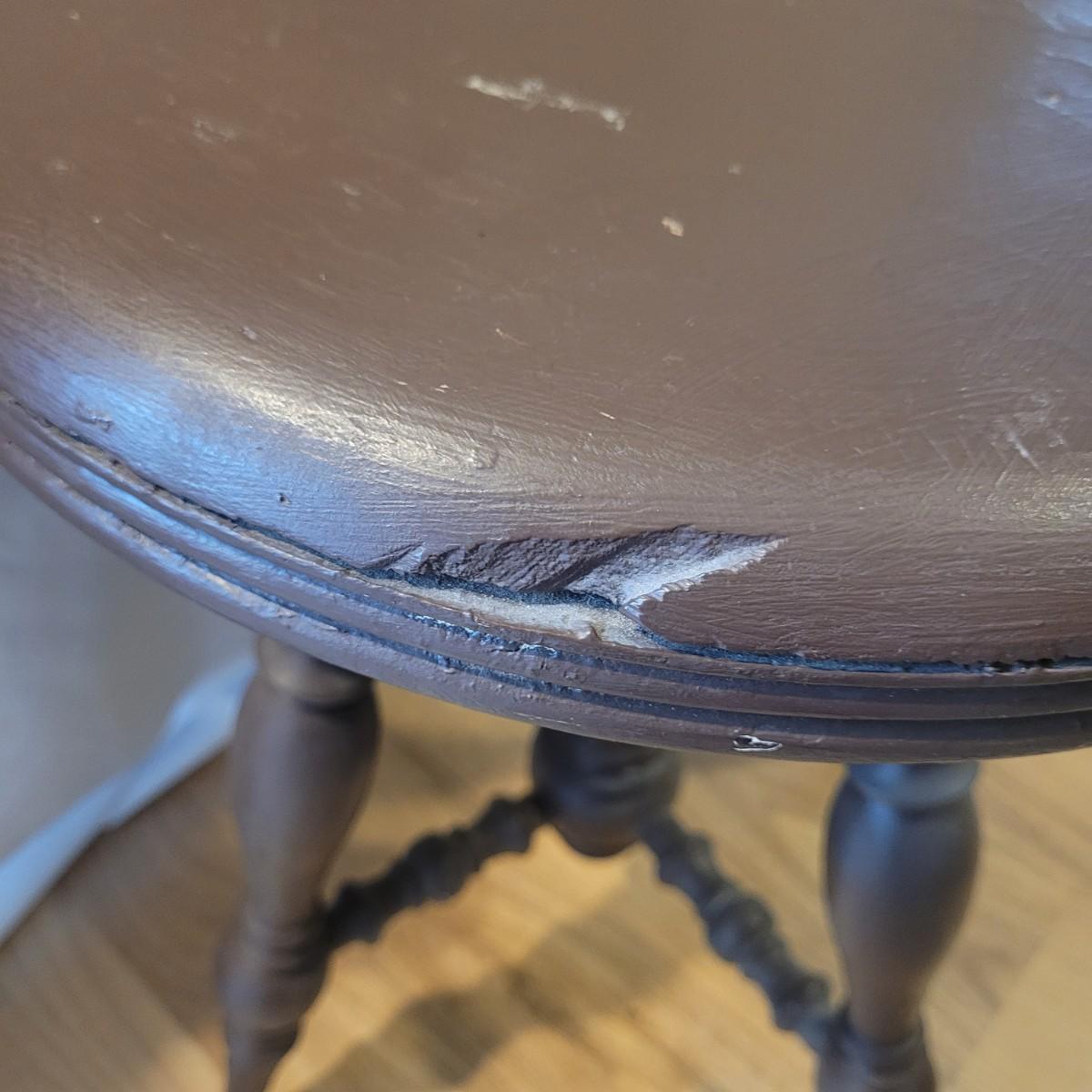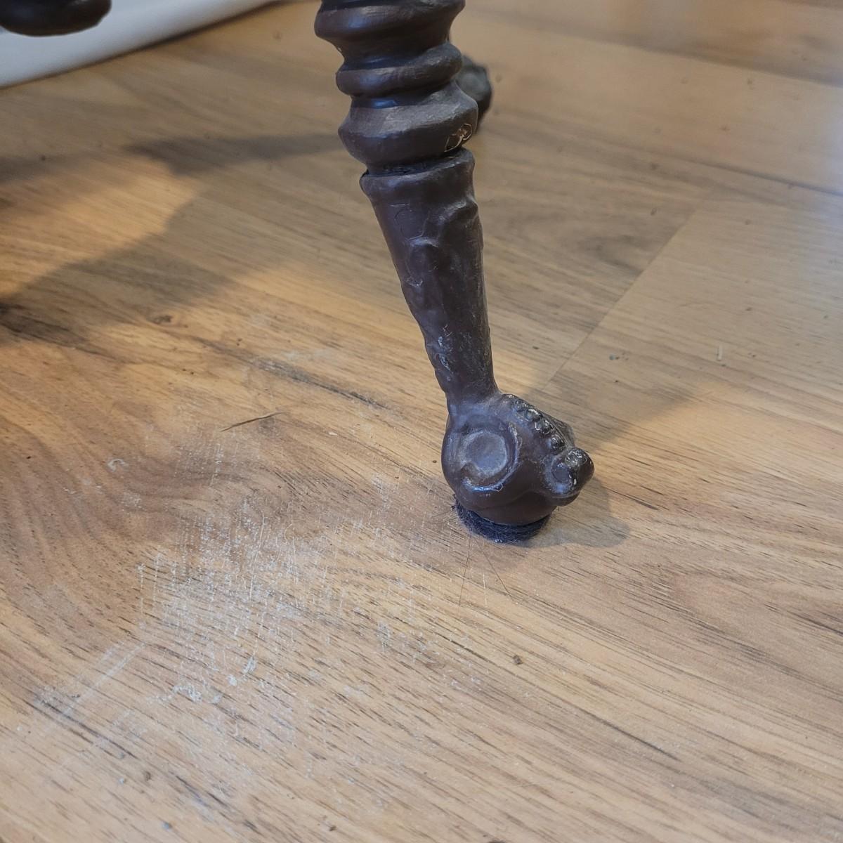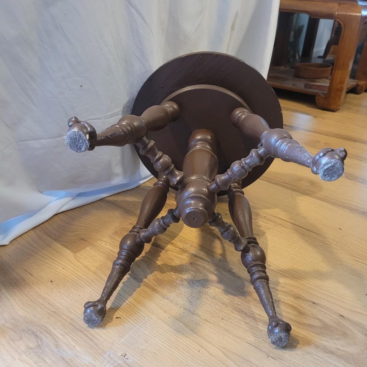 This antique wooden claw foot piano stool has a screw jack adjustable height to approximately 23”H. At lowest height, measures approximately 15” x 20”H. Screw is loud when adjusting, needs some lubricant. Local pick up only.