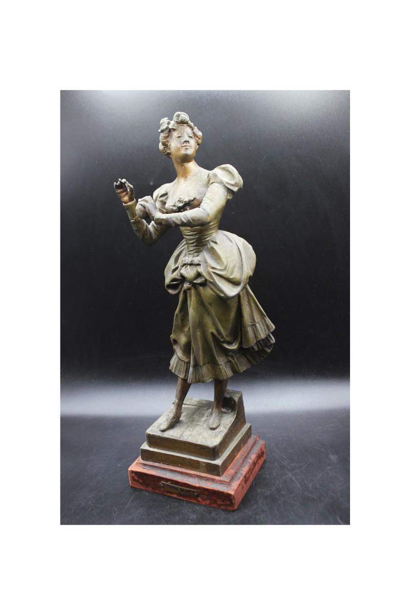 Antique Adolphe Jean Lavergne Propos Galant French Art Nouveau Statue in Calamine with Bronze Patina