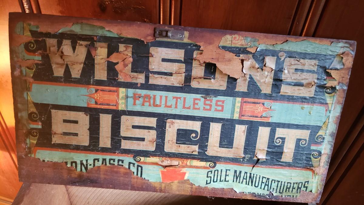 Antique advertising biscuit crate