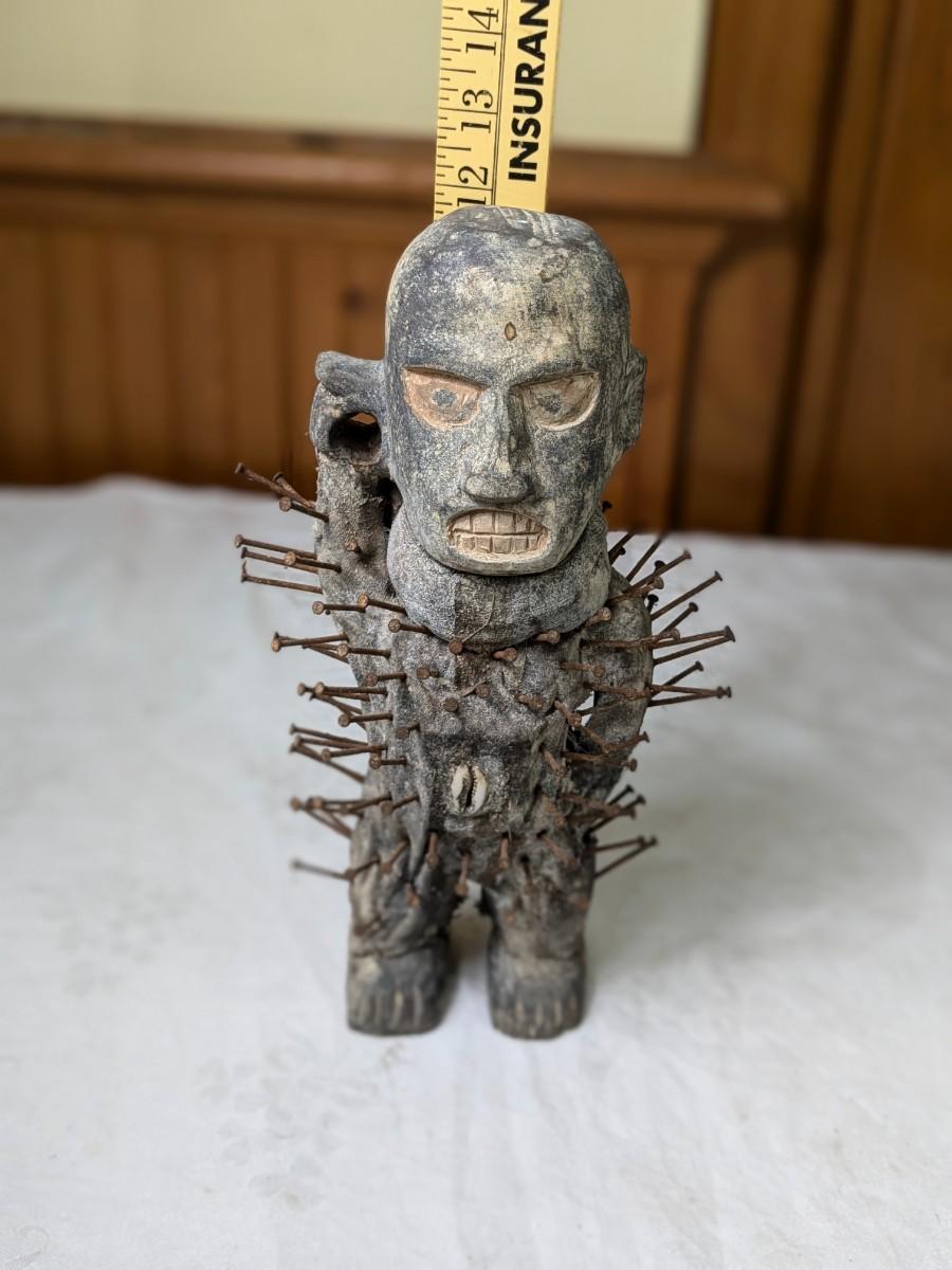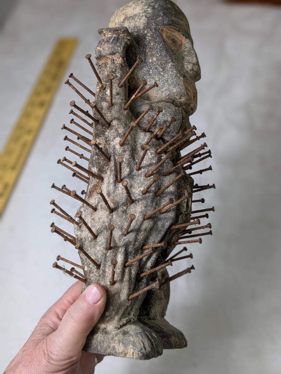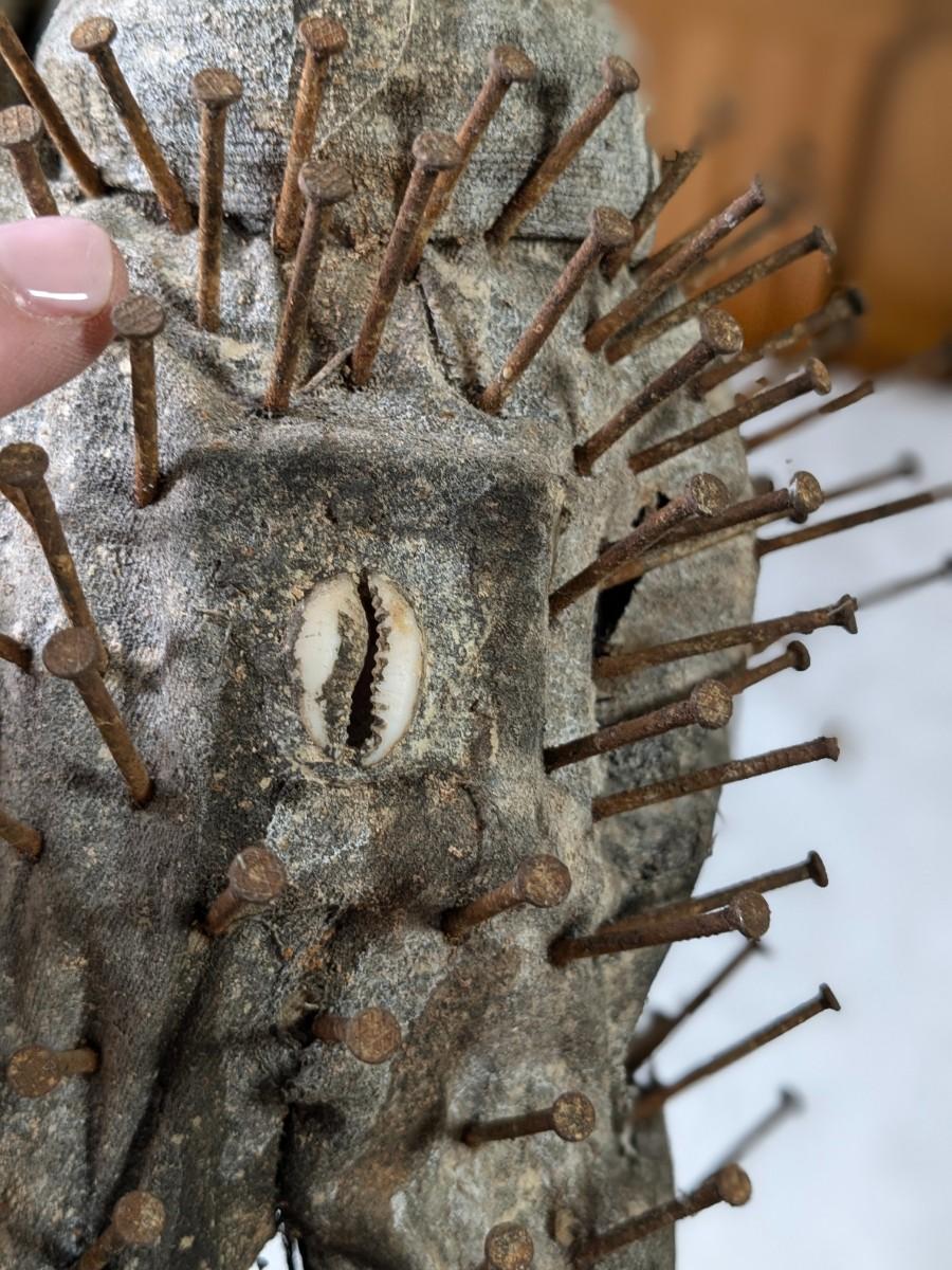The Nkisi N'Kondi is known for its significance in African culture, often used as a spiritual tool in various ceremonies, adding depth and meaning to this remarkable piece.