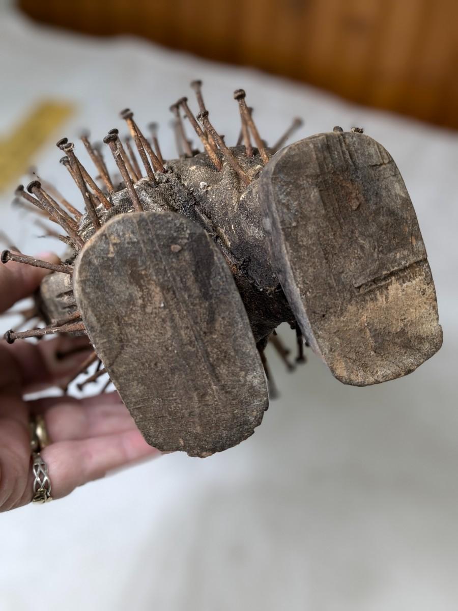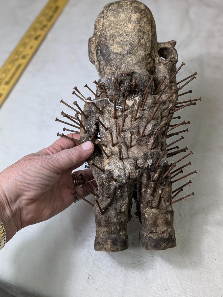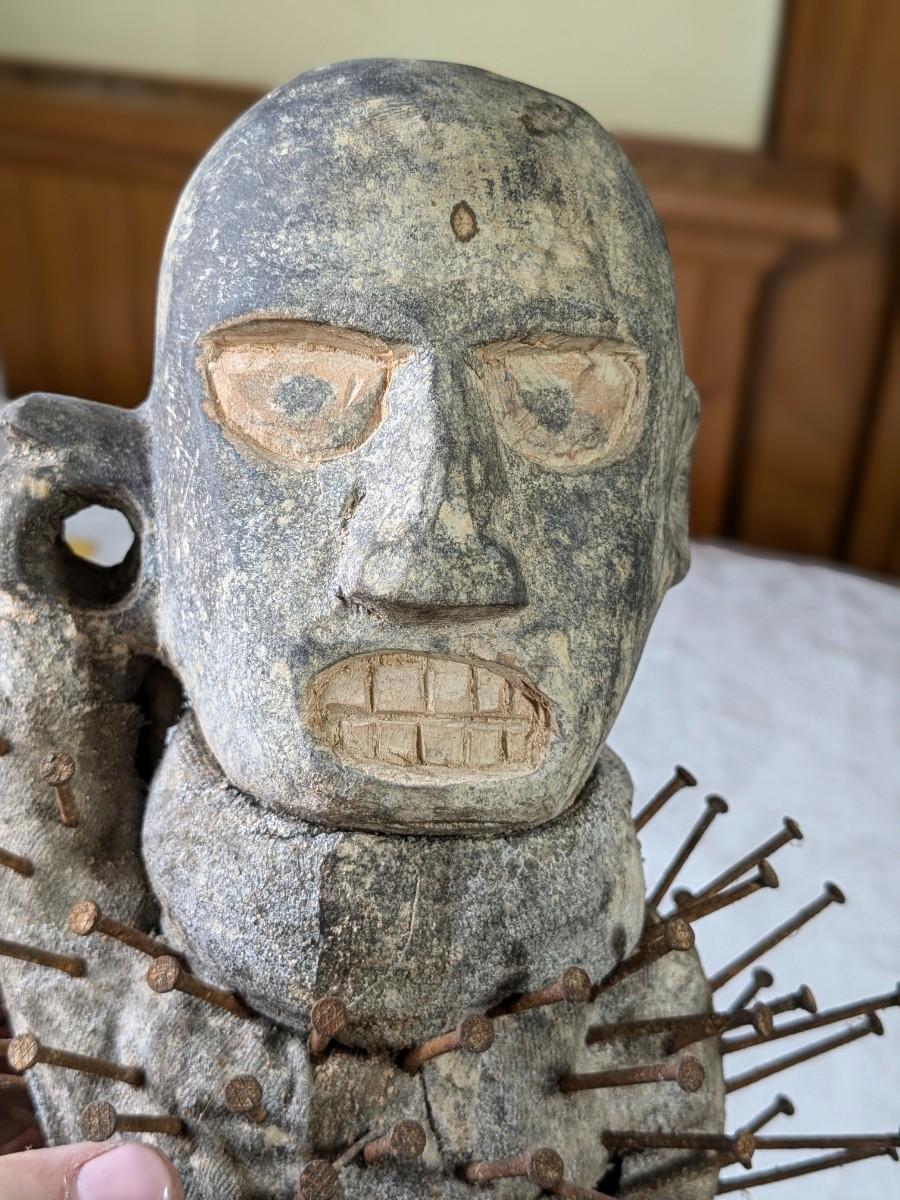 The Nkisi N'Kondi is known for its significance in African culture, often used as a spiritual tool in various ceremonies, adding depth and meaning to this remarkable piece.
