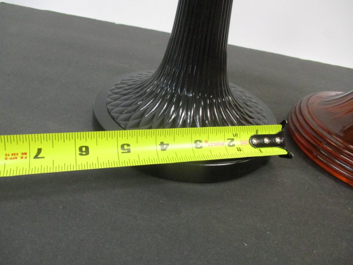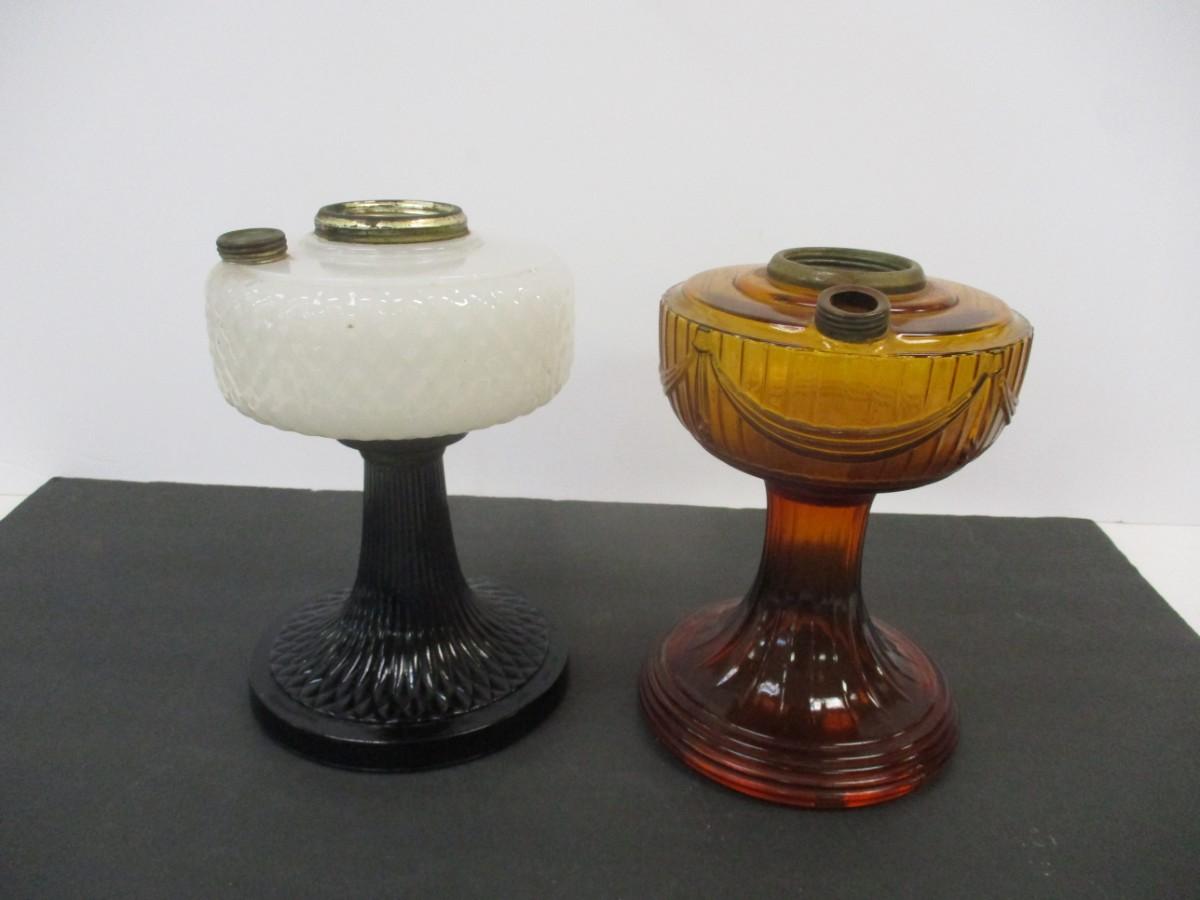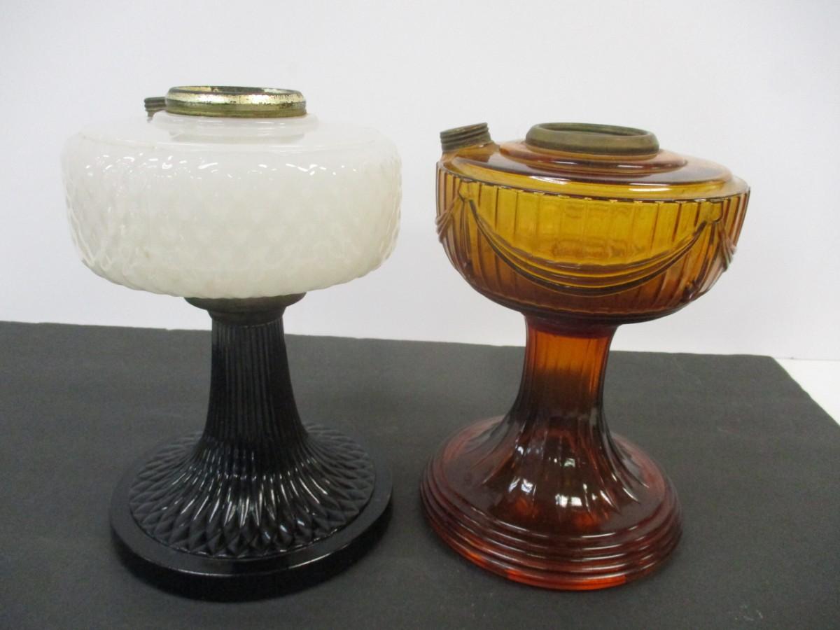 Aladdin Oil Lamp with a Corinthian B-104 design, featuring a black glass foot and a moonstone font Also, The Aladdin Amber Lincoln Drape Stand is a collectible lamp that features a beautiful amber hue and a unique drape design. These collectible lamps are a unique and vintage pieces that adds a touch of historical charm to any space. With its intricate design and timeless appeal, these Aladdin oil lamps are sure to be a standout addition to any collection of antique lighting pieces.
