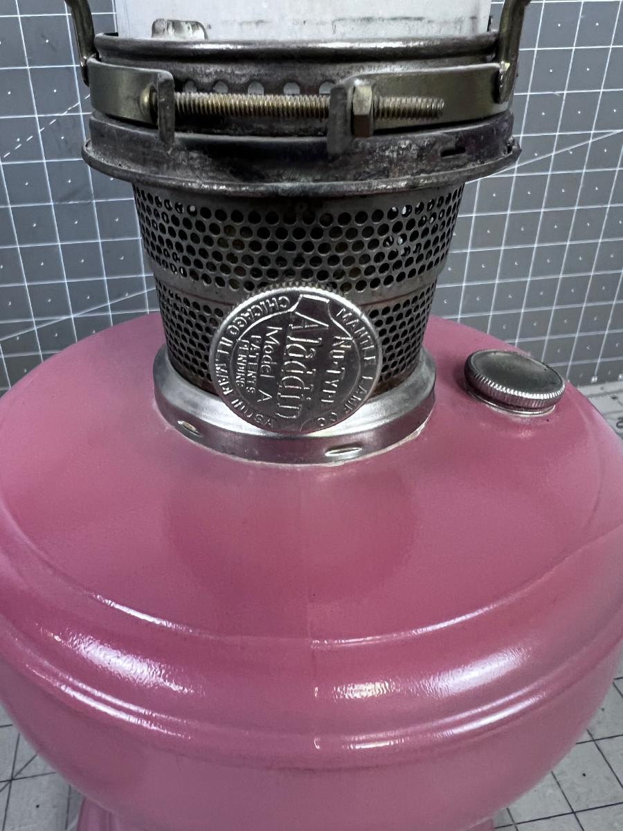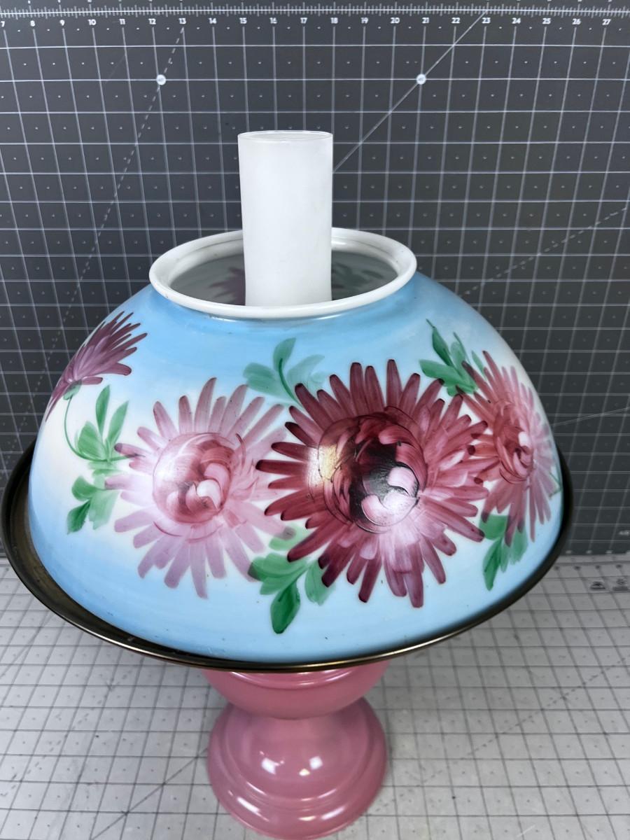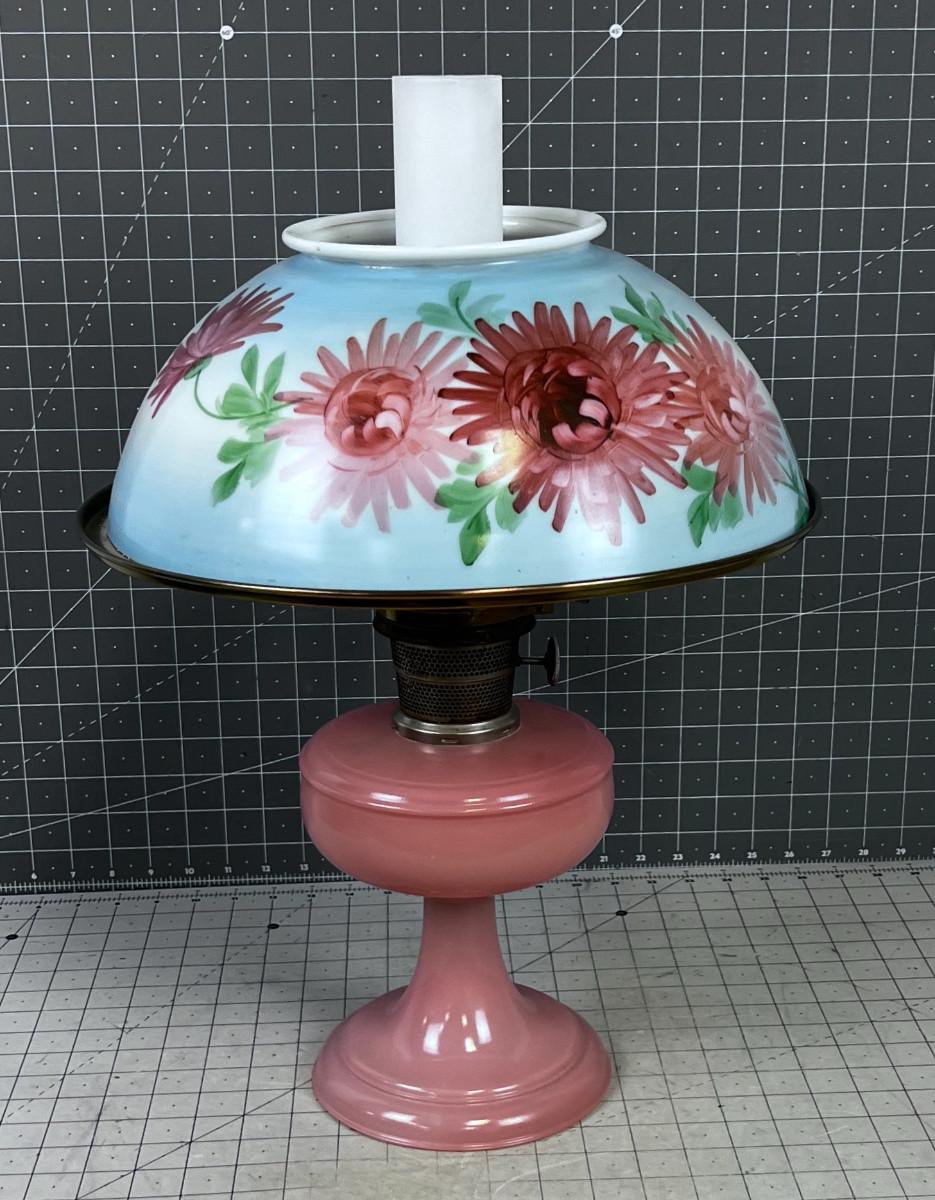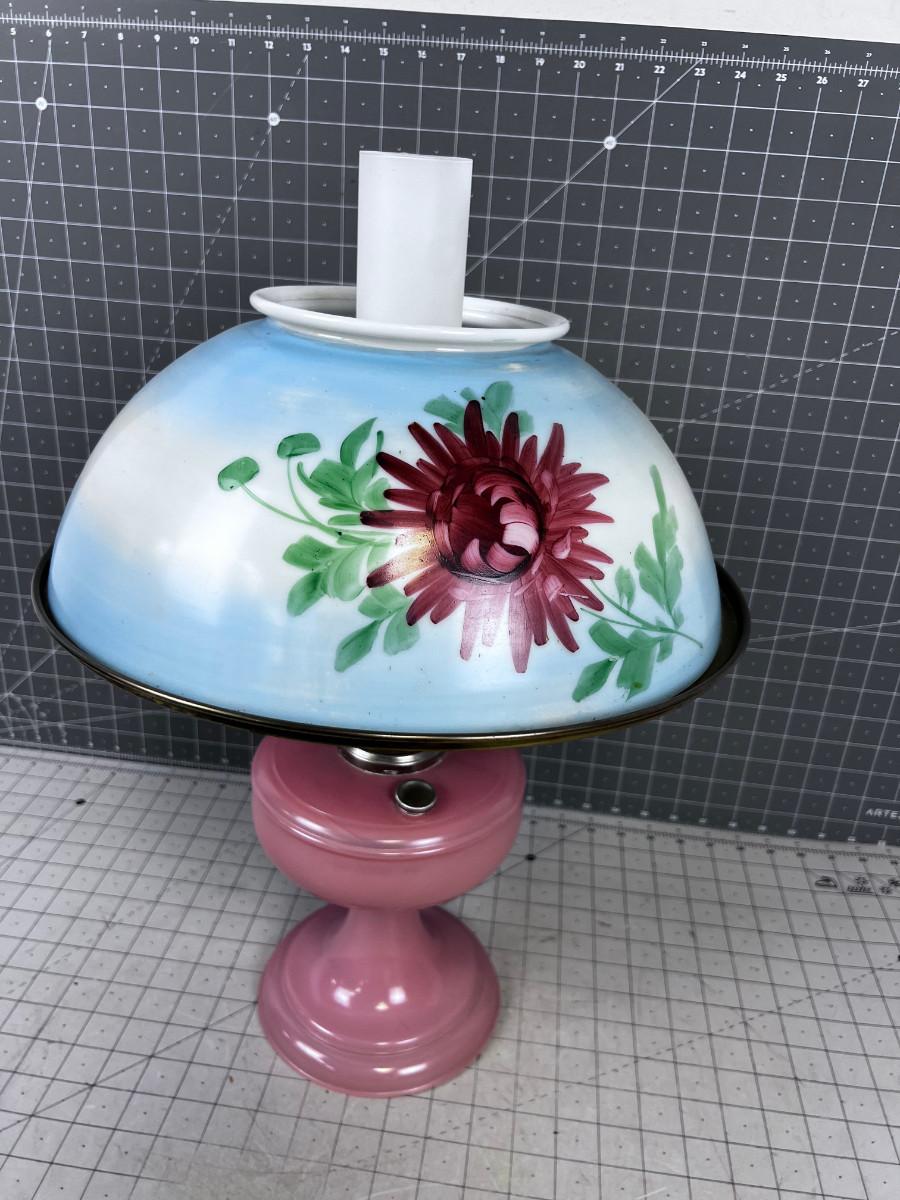 Antique Aladdin Lamp with Hand Painted Glass Shade