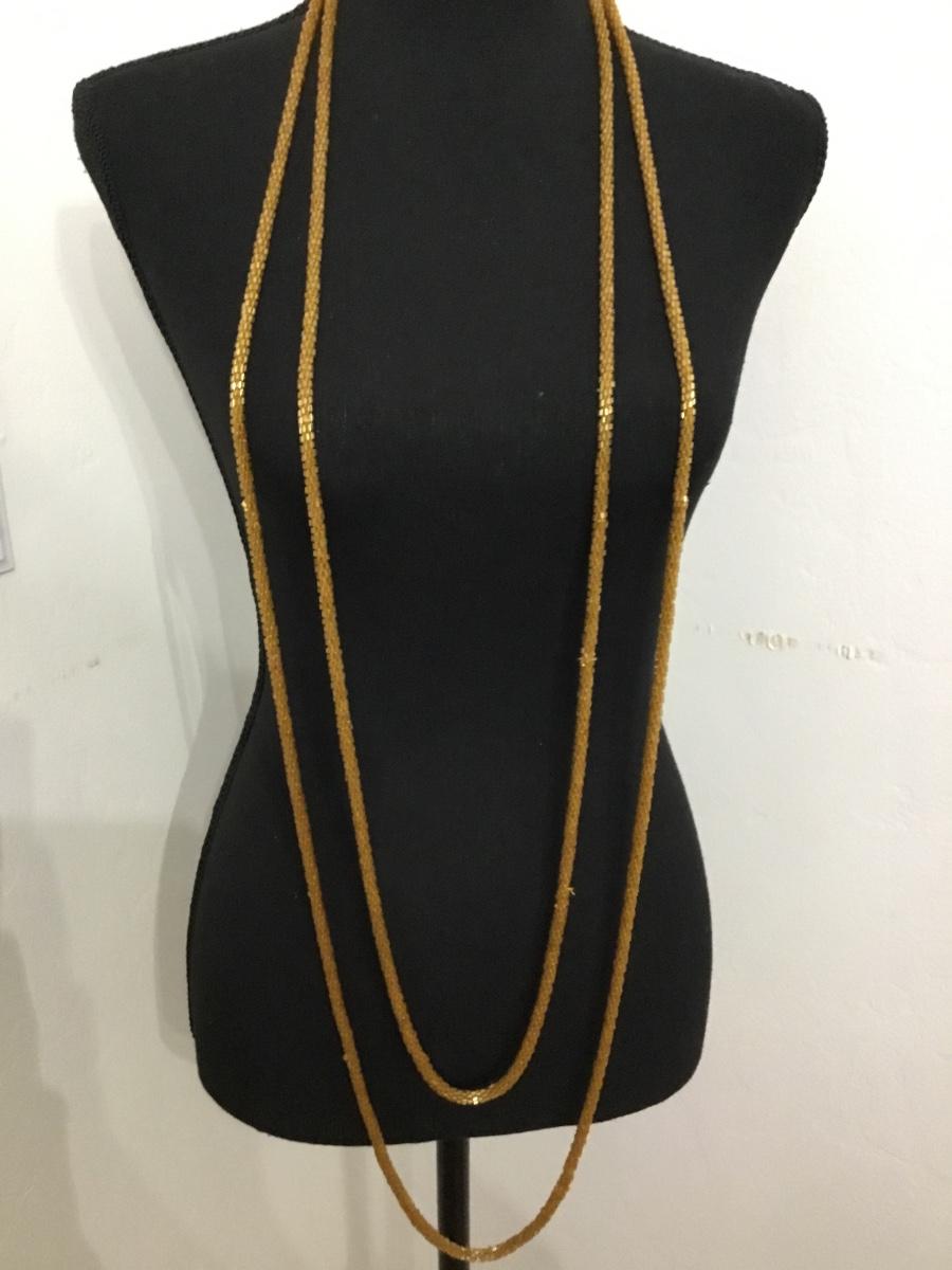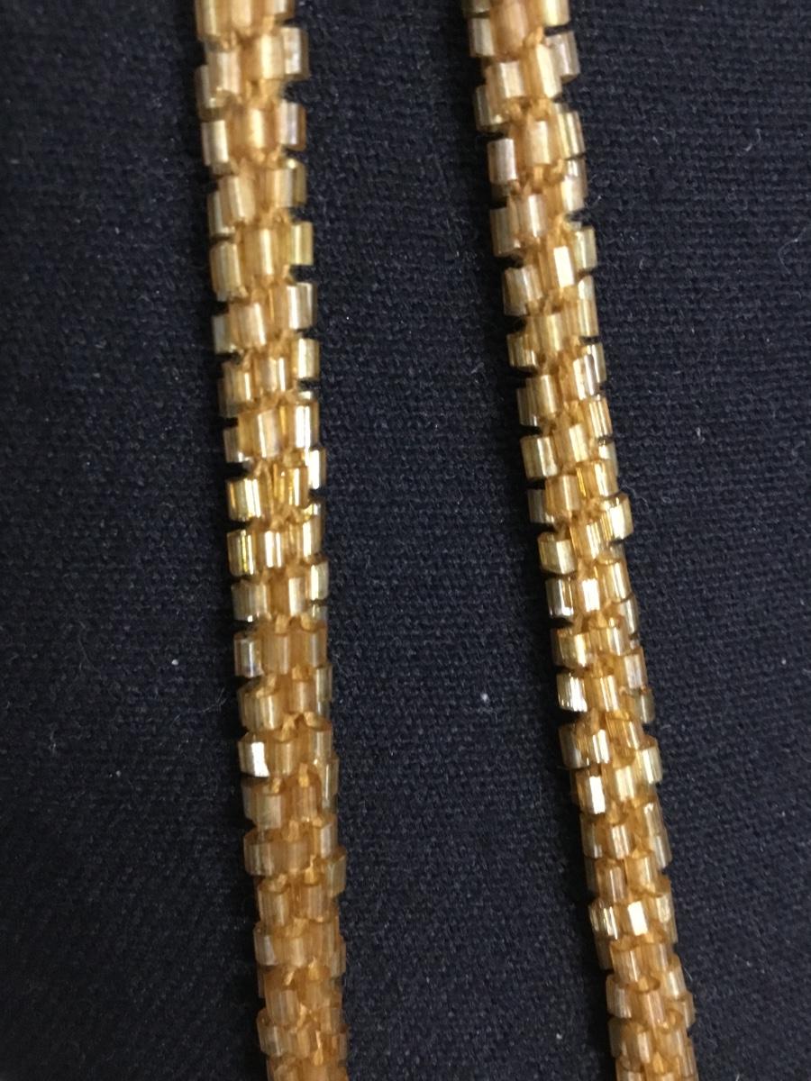 Antique amber, colored, glass bead rope, wraparound necklace