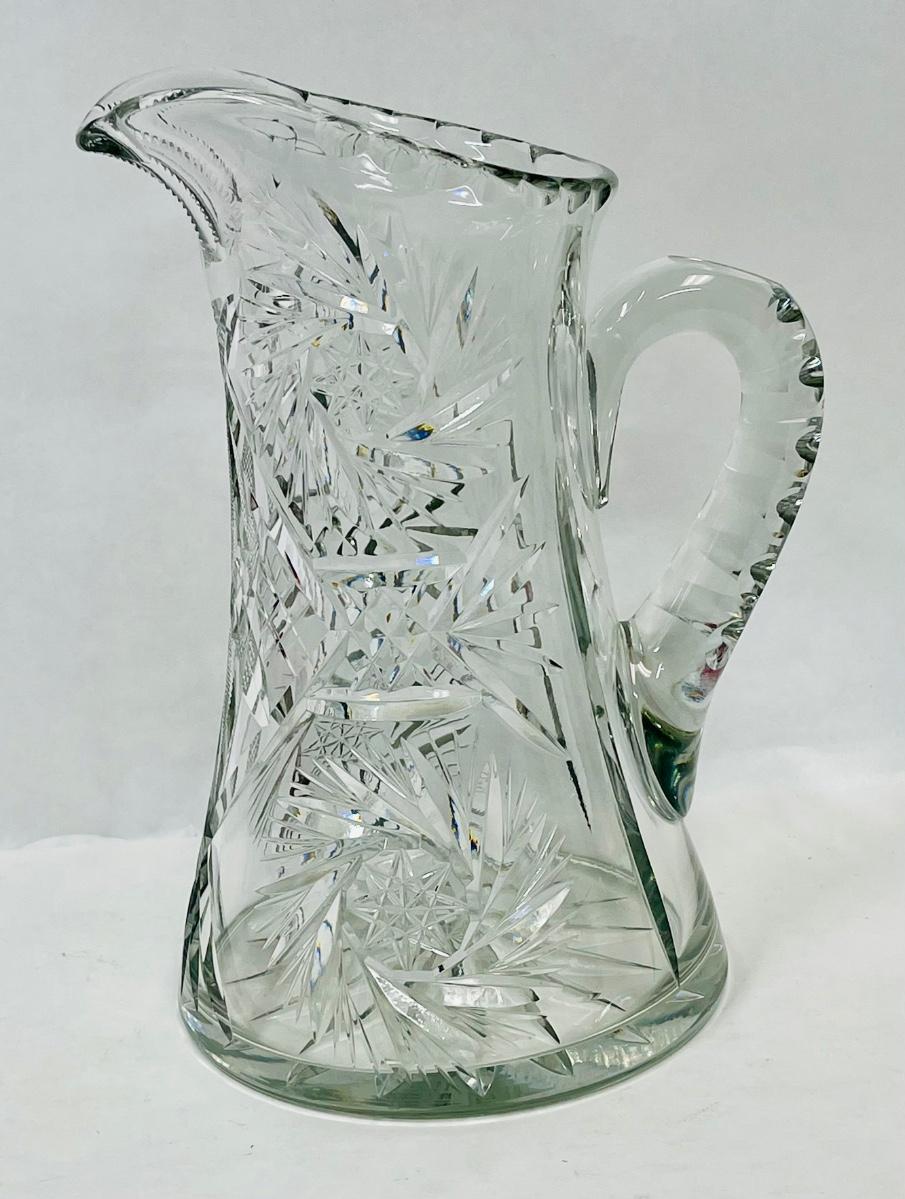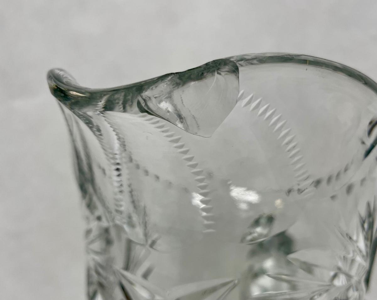 Antique American Brilliant Cut Glass Pitcher - chipped edge
