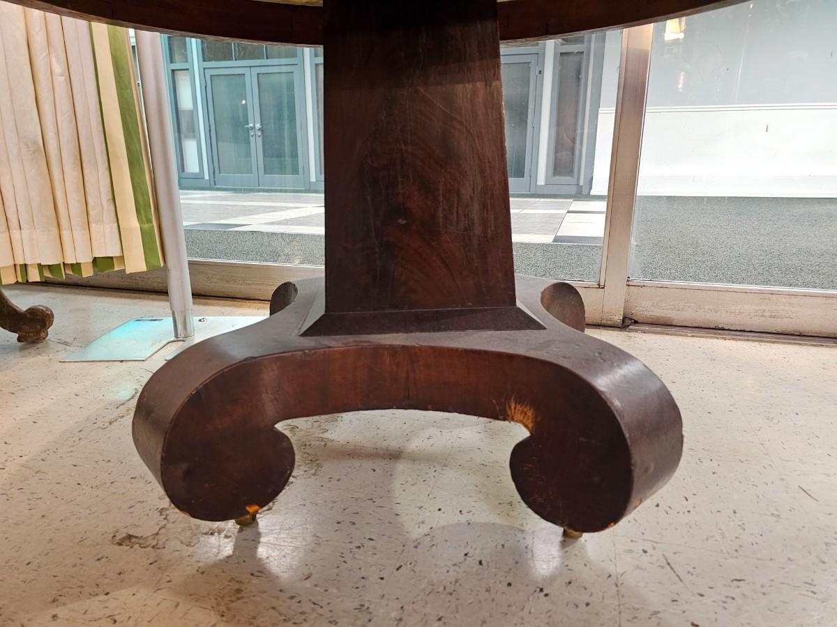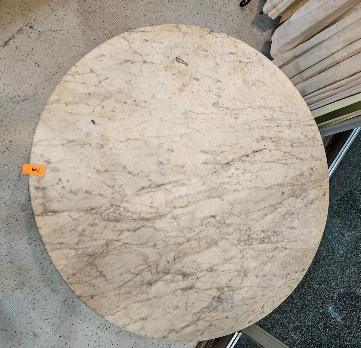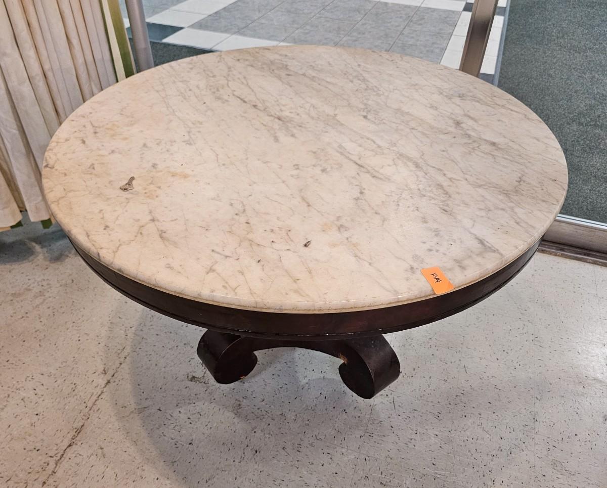 Antique Empire style marble top, round center table. American, circa 1850, 45"W x 29"