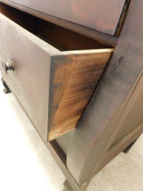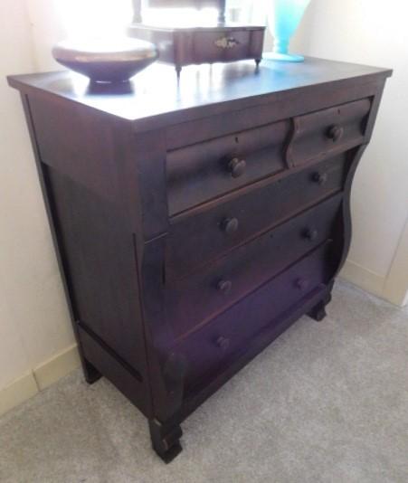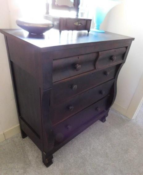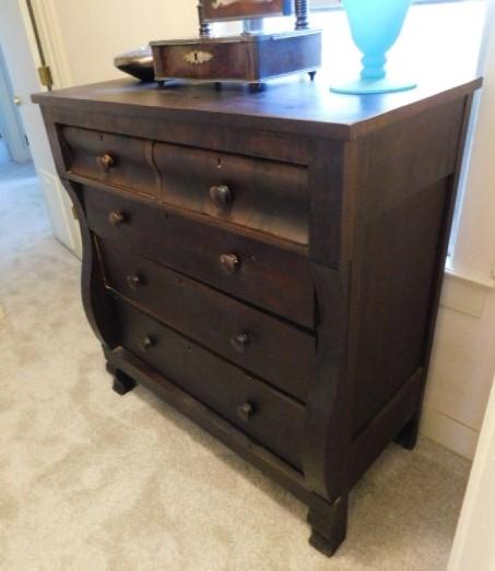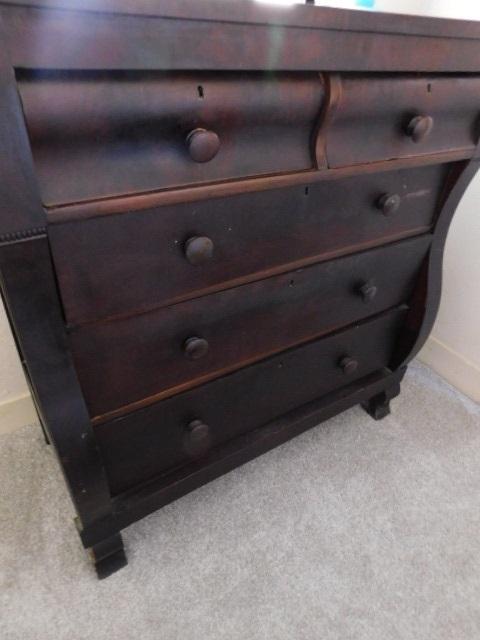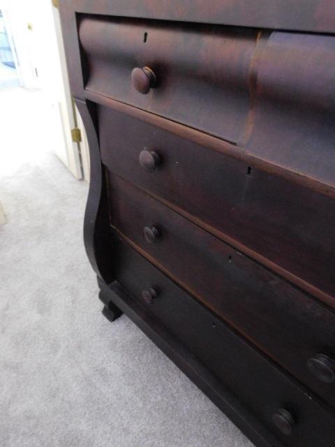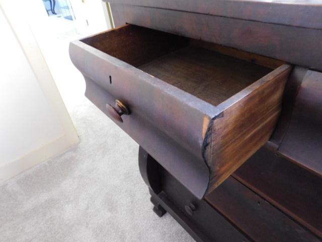 Antique American Empire Two Over Three Mahogany Dresser 43"x45" no key. has some scratches and wear to the finish. this piece is solid and extremely appealing