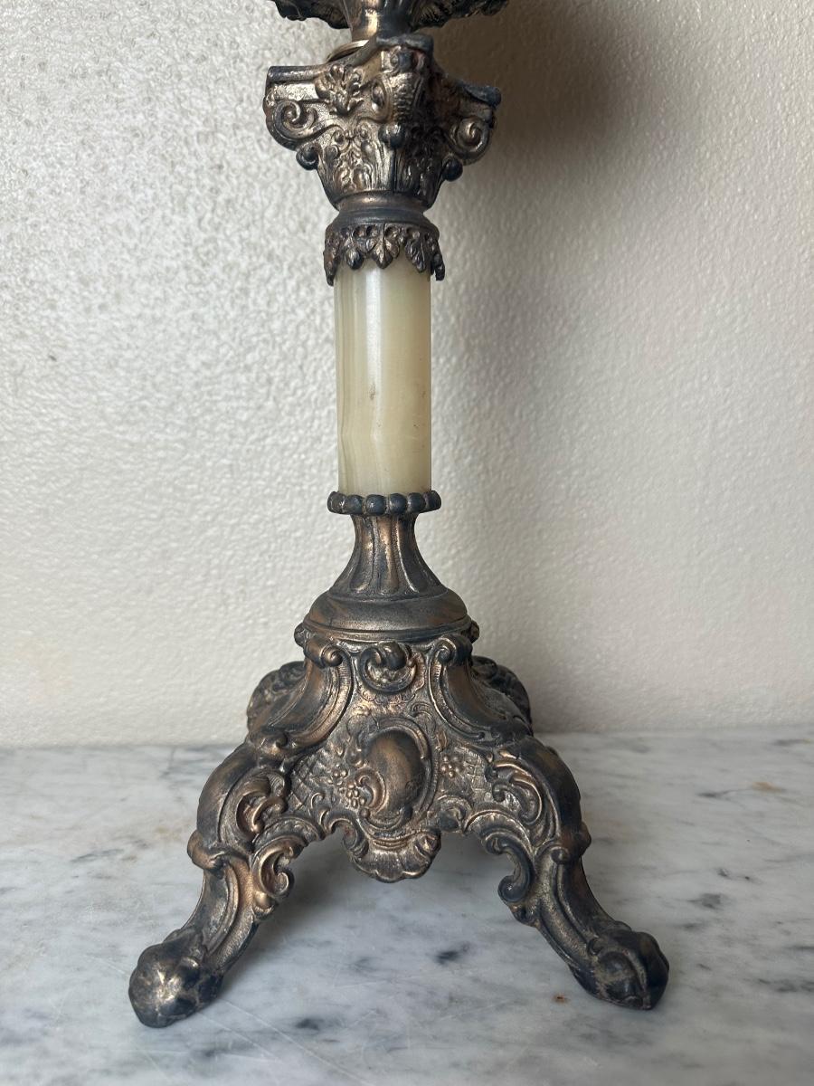 Antique American Made Converted Oil Lamp with Ornate Cherub Body