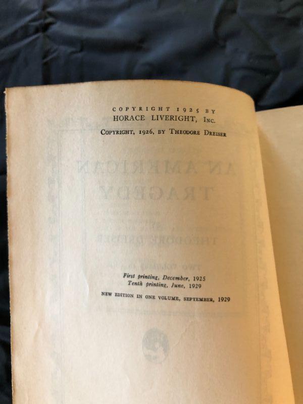 Antique An American Tragedy by Theodore Dreiser Two Volumes in One Horace Liveright New York. In very good condition, please review images carefully.