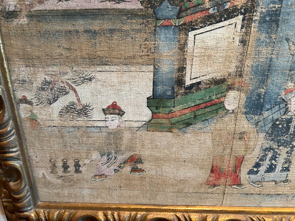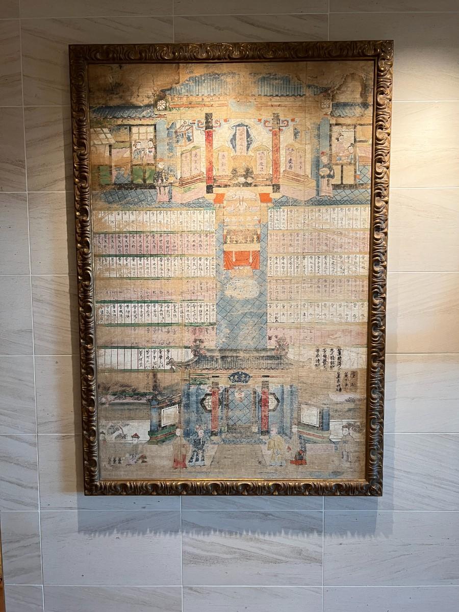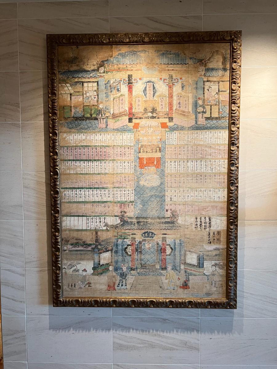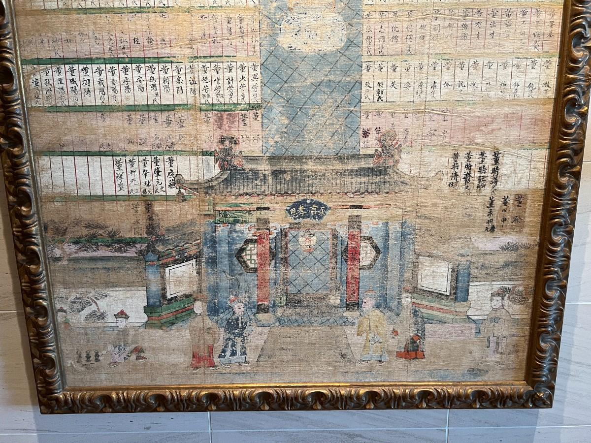 Rare and beautiful piece of Chinese history. Ancestral painting of a Chinese family on canvas. Professionally framed with quality and care. Provenance from the estate indicates that this piece was acquired from William Overholt Interiors of Seattle, WA in 1998. Condition as shown in photos.