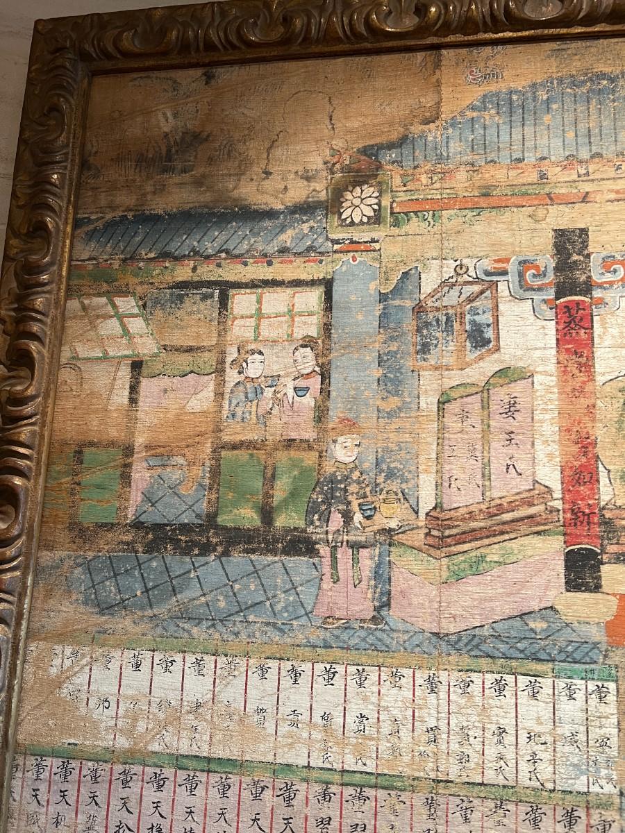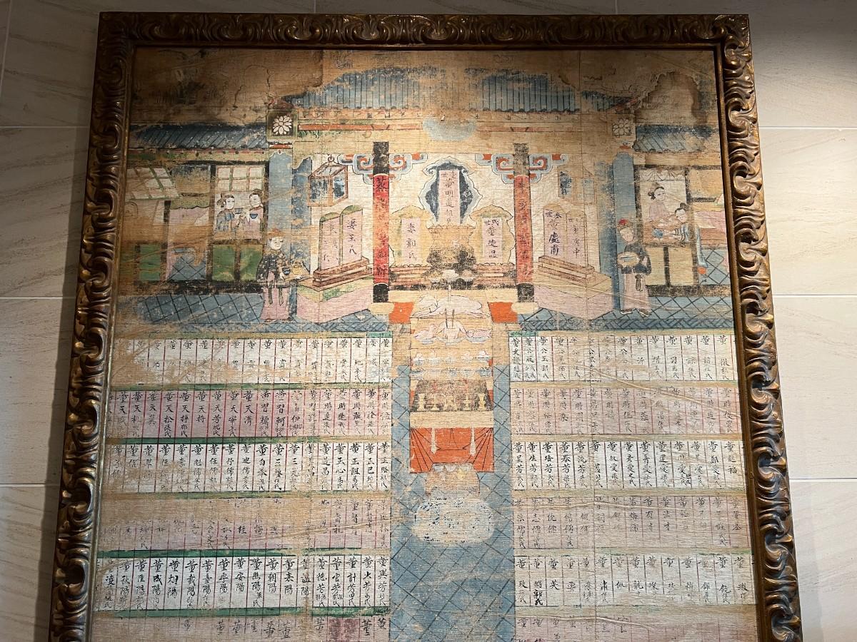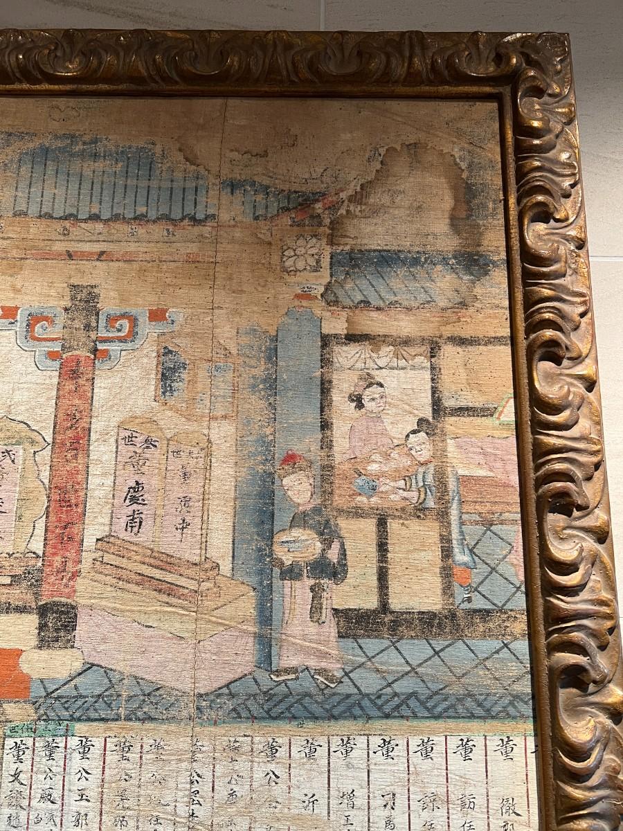 Antique Ancestral Painting of Chinese Family on Canvas