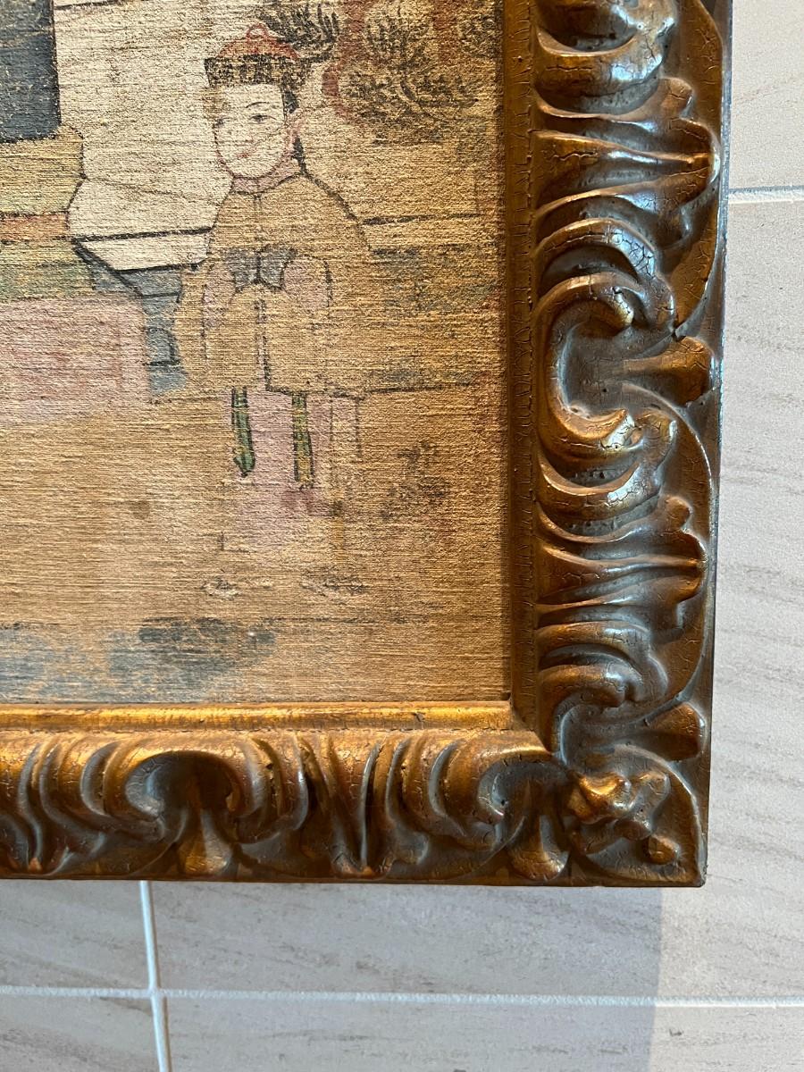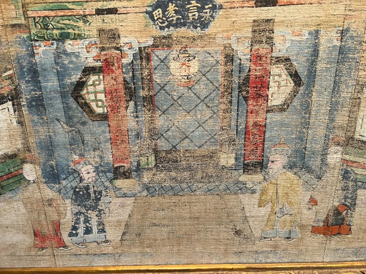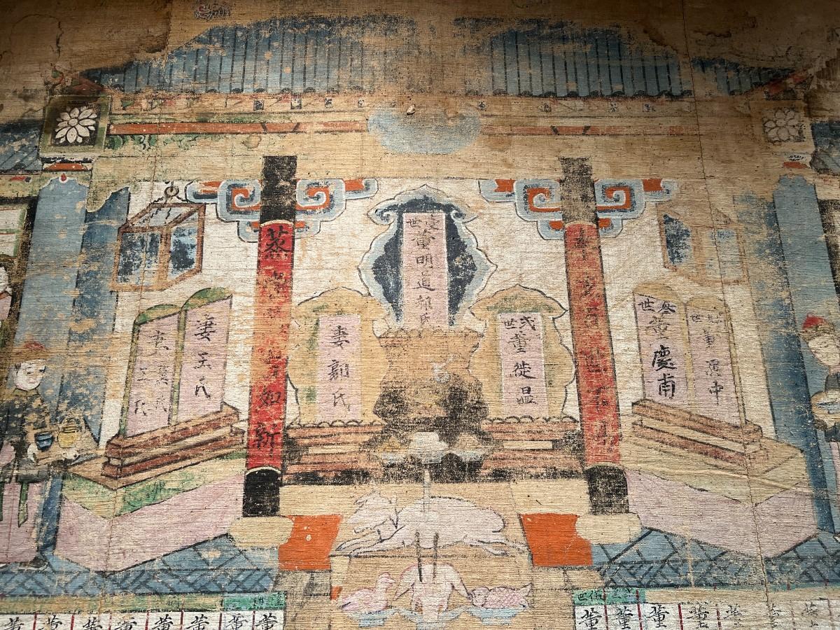 Antique Ancestral Painting of Chinese Family on Canvas