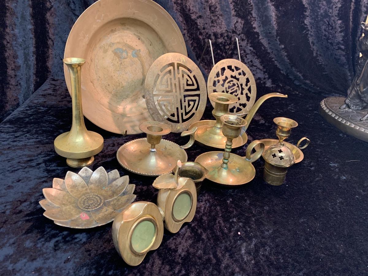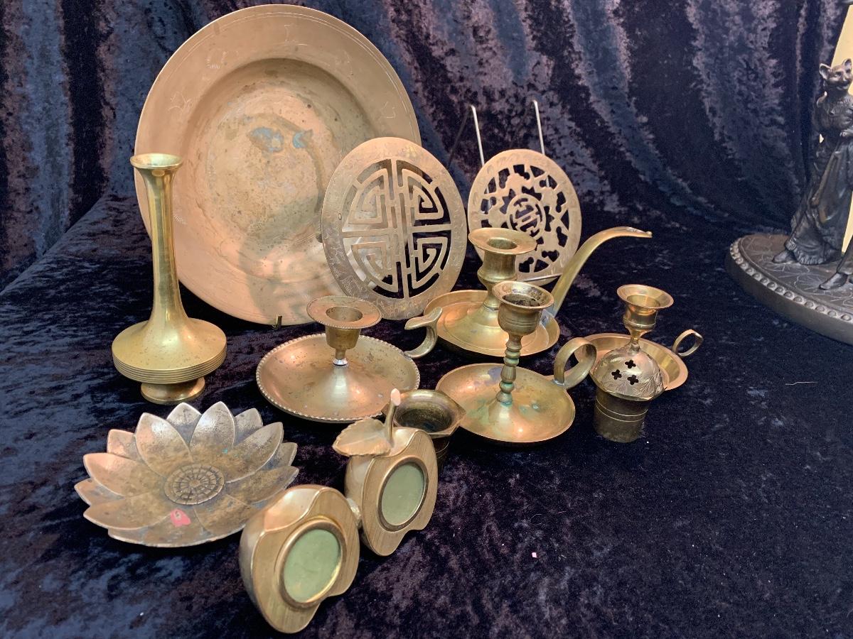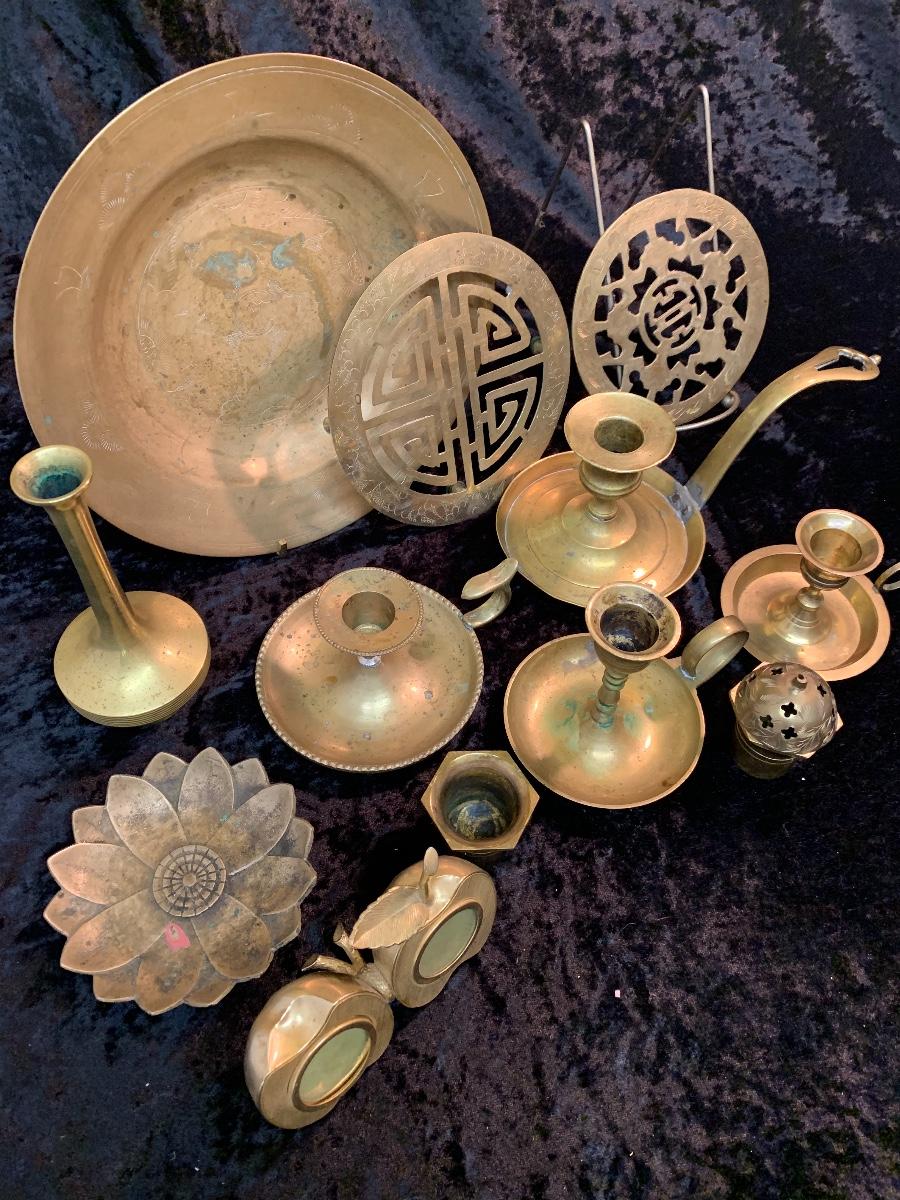 Antique and authentic collection of hand held candle sticks, trivets, etc...