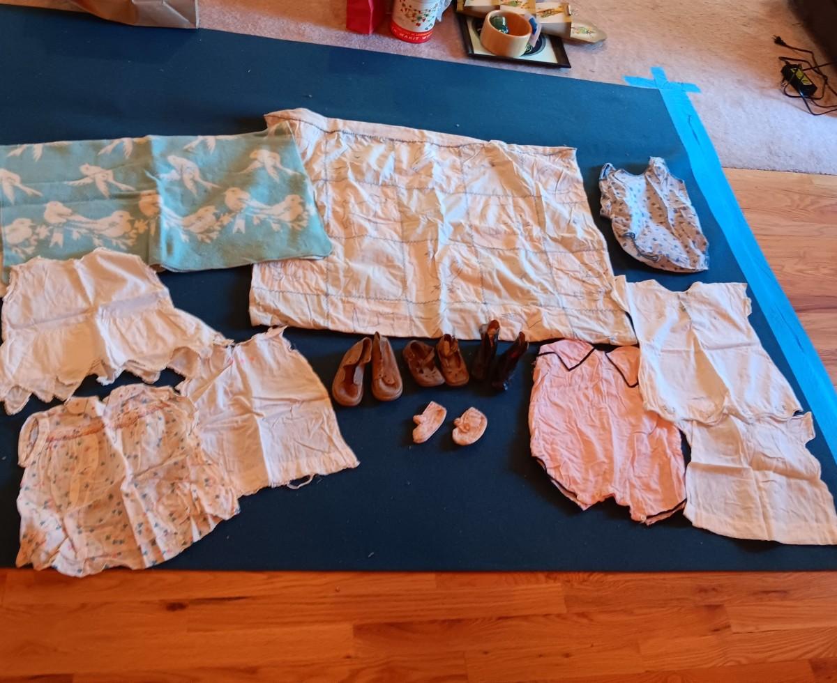 ANTIQUE AND VINTAGE BABY SHOES, BLANKETS AND OUTFITS