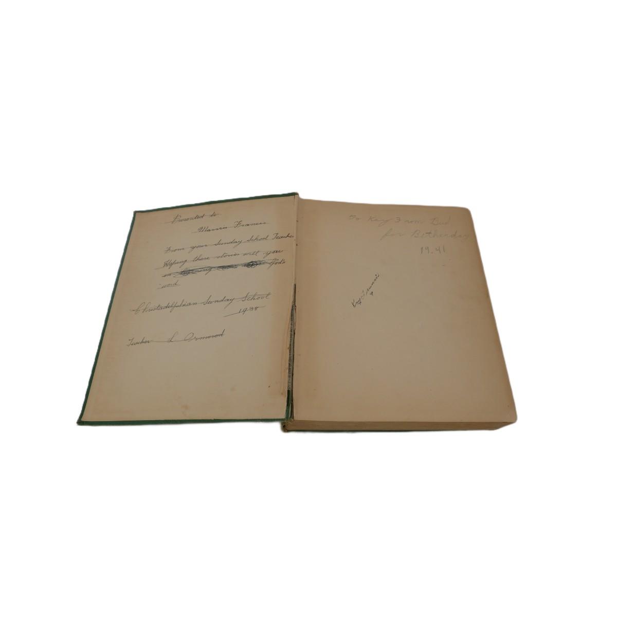 The Great Stories of the Bible for Children - Illustrated, copyright 1925 by The World Syndicate Publishing Co. Beautiful vintage book with colored drawings and easy to read stories. Condition is good for age, but binding is a bit weak and front cover is pulling away. Measures 7.5" x 9.5". Salvation - Disclosing God's provision for man's protection from disaster and salvation to life everlasting in complete happiness. A textbook for the Jonadabs by J. F. Rutherford copyright, 1939. In great condition! Smaller book measuring 5" x 7.25". Bible Reading for the Home Circle - Illustrated copyright, 1888 by Review and Hearld. Amazing antique book from the 19th century. Cover has typical wear from age, but pages and binding have held up nicely. Measures 6.5" x 9". Lot weighs 6 lbs. (M1)