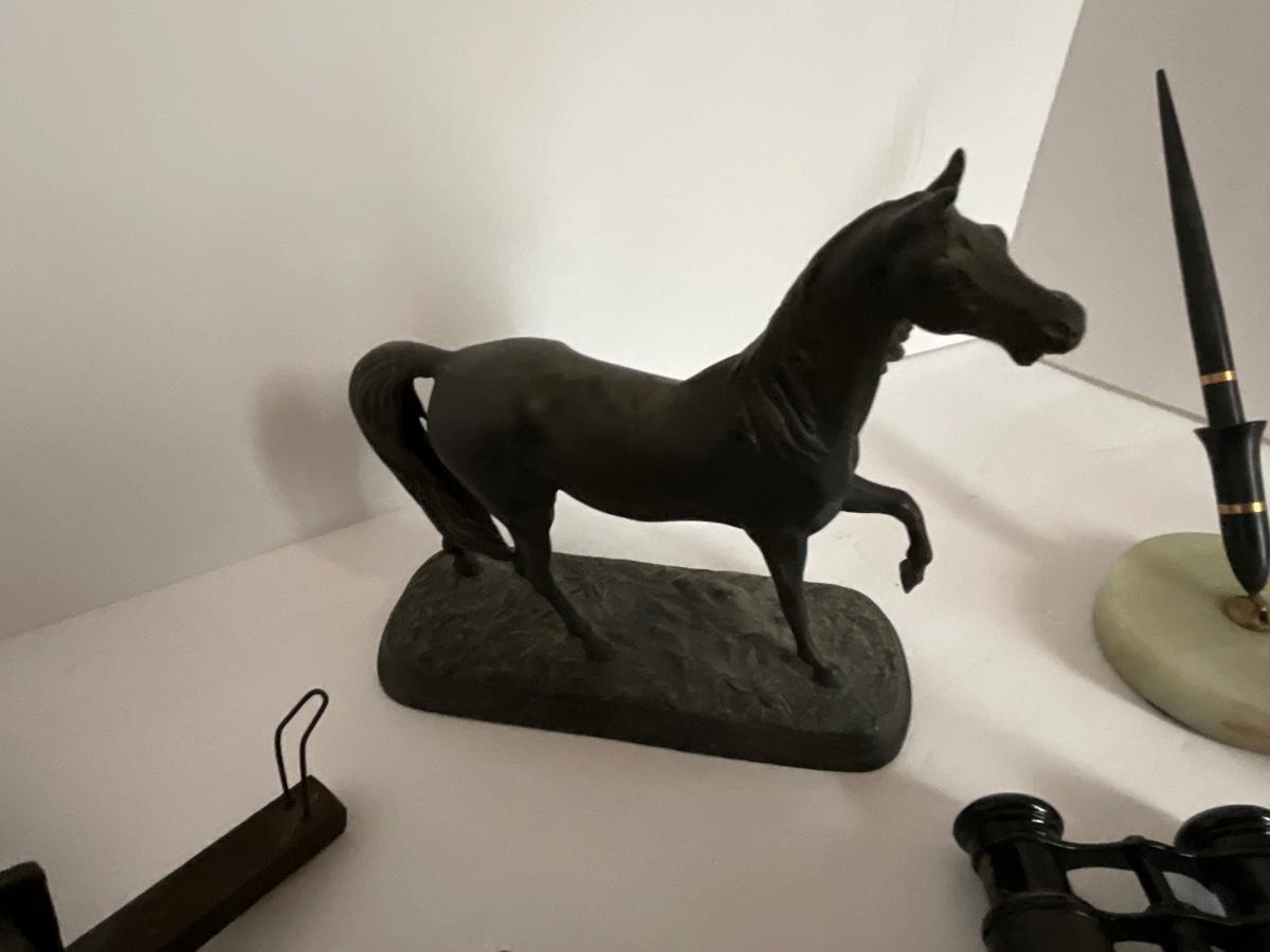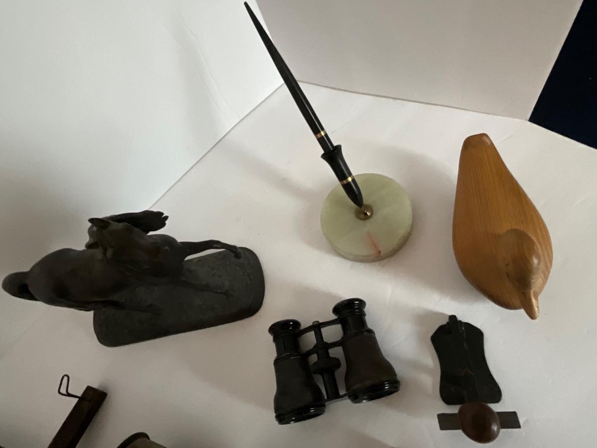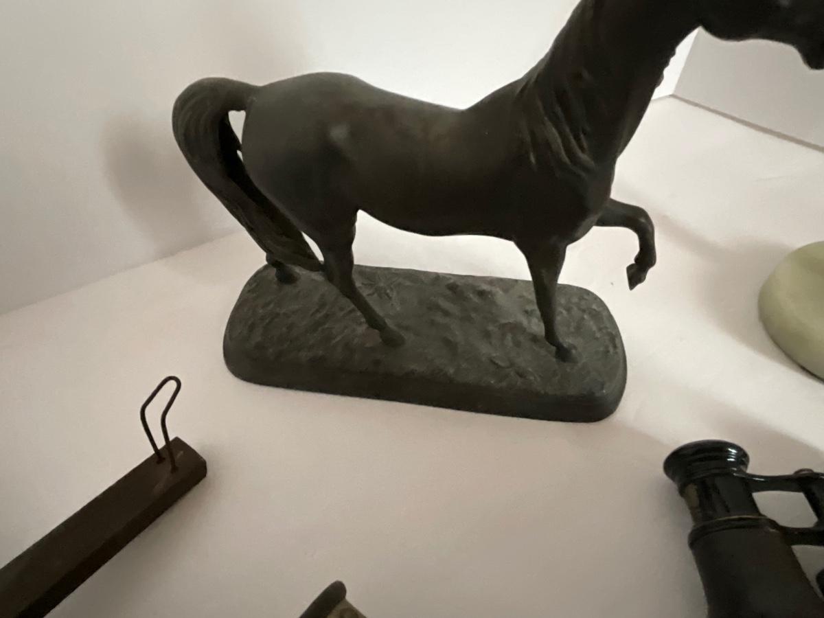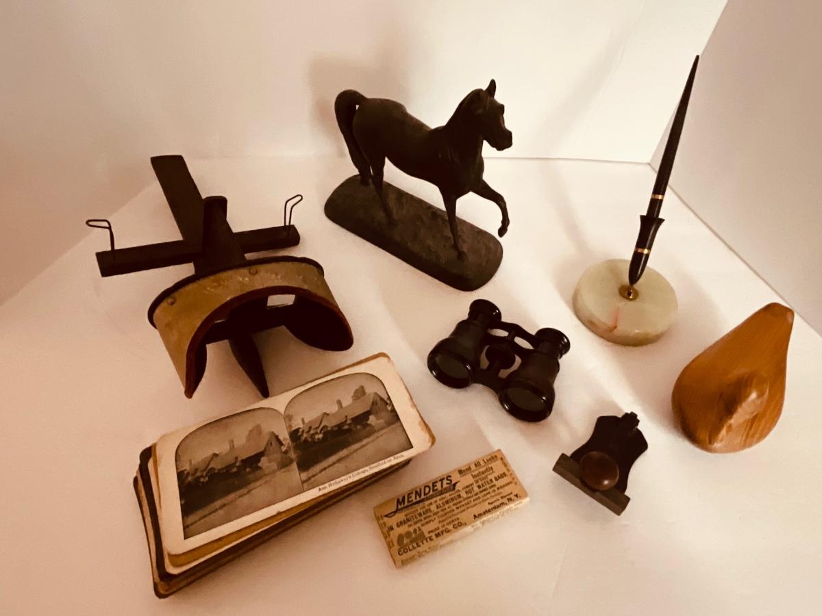 Antique Viewer, Vintage Opera Glasses, Horse Statue(very old possibly from top of clock from SC's Somerset Plantation), Duck, and More As Pictured
