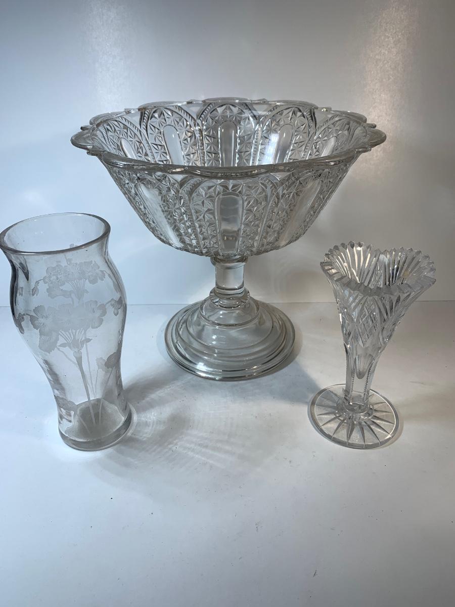 Group of antique and vintage glass all really nice quality very nice etching on the 1930,s piece