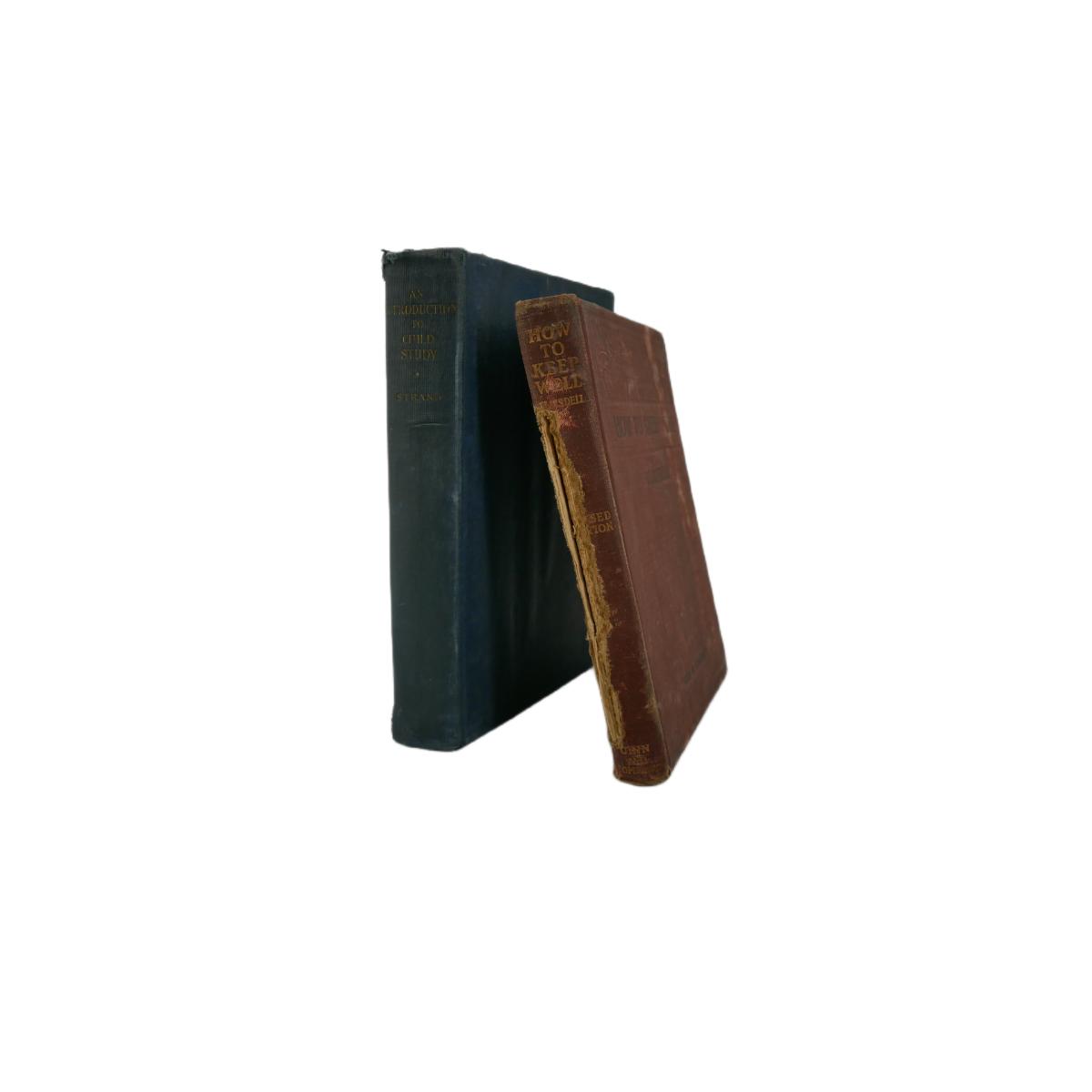 An Introduction to Child Study by Ruth Strang copright 1930 The Macmillan Company. Book does have some underlining and pencil marks, overall very good condition. Measures 5.5" x 8". How to Keep Well - A textbook of physiology by Albert F. Blaisdell copyright, 1910 Ginn and Company. Spine of book has damage, binding is loose, fair condition. Measures 5.5" x 7.5". Lot weighs 2 lb 7 oz. (M6)