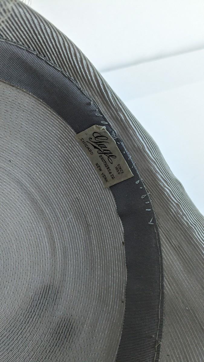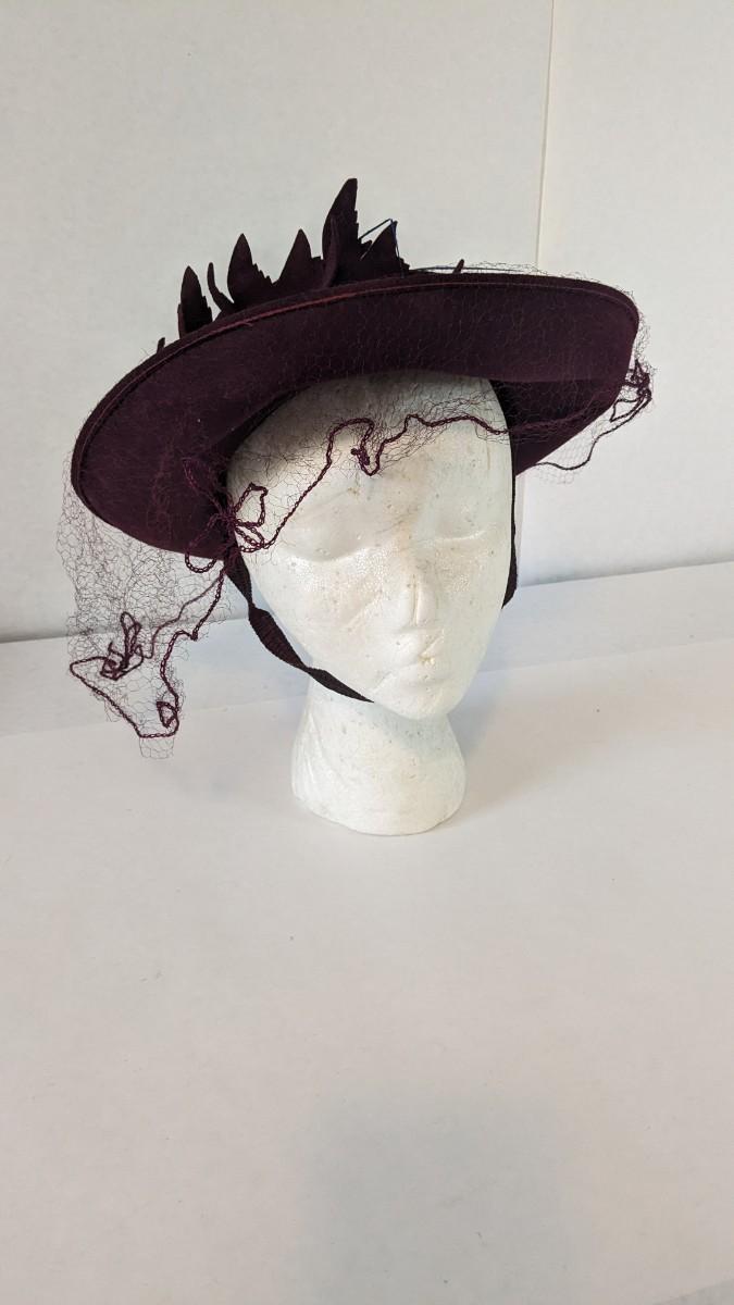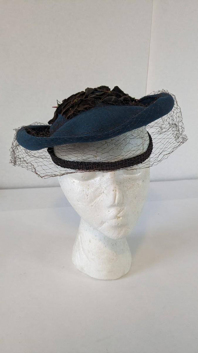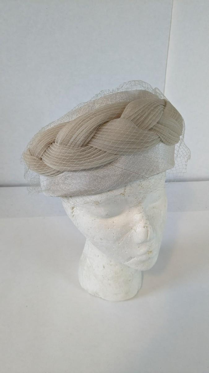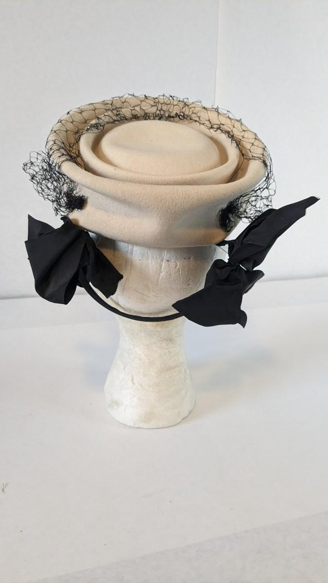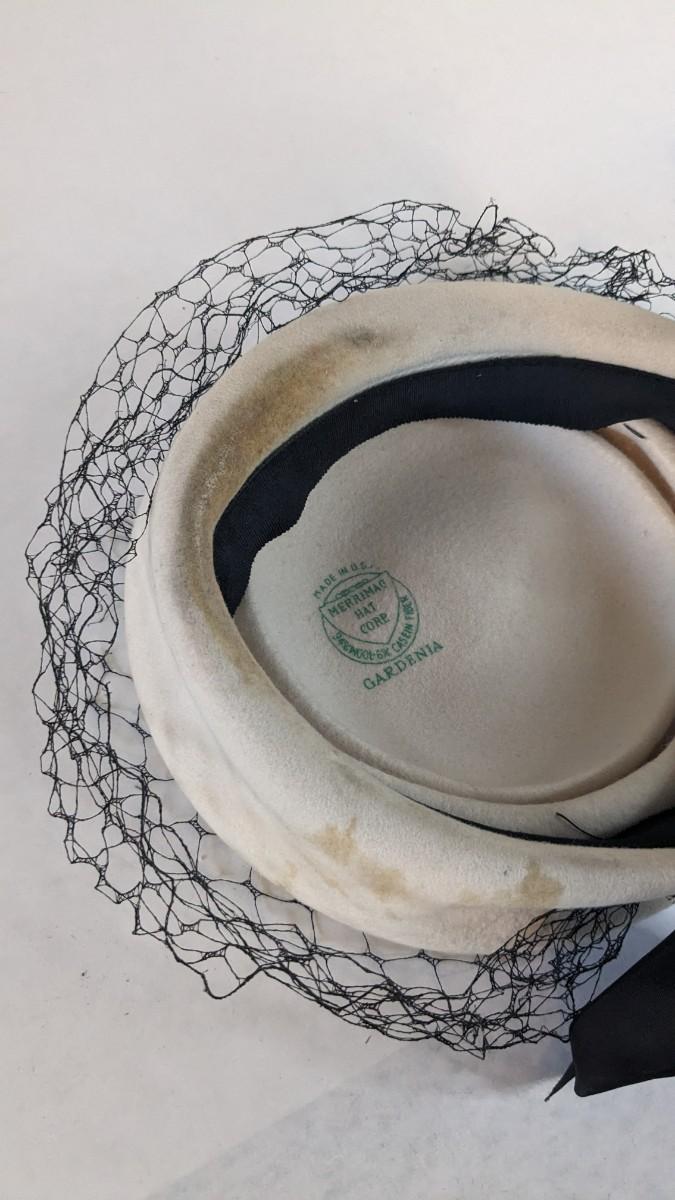 (16) Varied decade and occasion ladies hats, all are in remarkable condition for age showing minor discoloration if any, light wear in accordance to age. Names include Fiskhats, Lasdon, The Lymon Hat, Clover Lane wool, Austelle, Premier, Lansco, Merrimac gardenia hat, Gage Brothers, Town and Country hat, Dover, and Betty Coed. As well as standard union made pieces. There is also a phenomenal Gene Arlette real feather piece. A couple of loose nets are included. Wear is noted as found in photos. Most of these hats were purchased froms Dobbs Fifth Avenue. Extra handling fees will apply. Hat boxes can be found in Lot 79