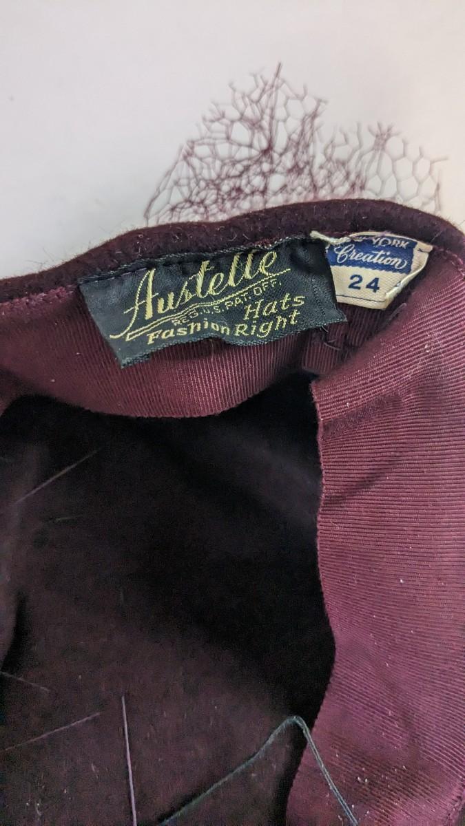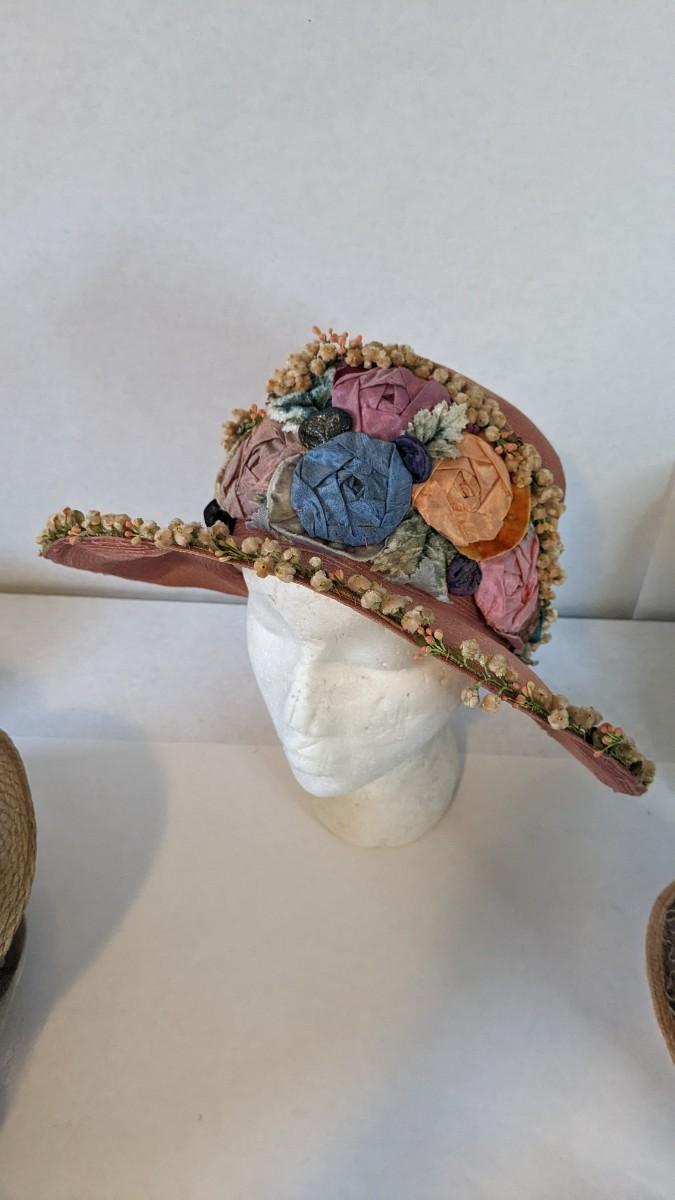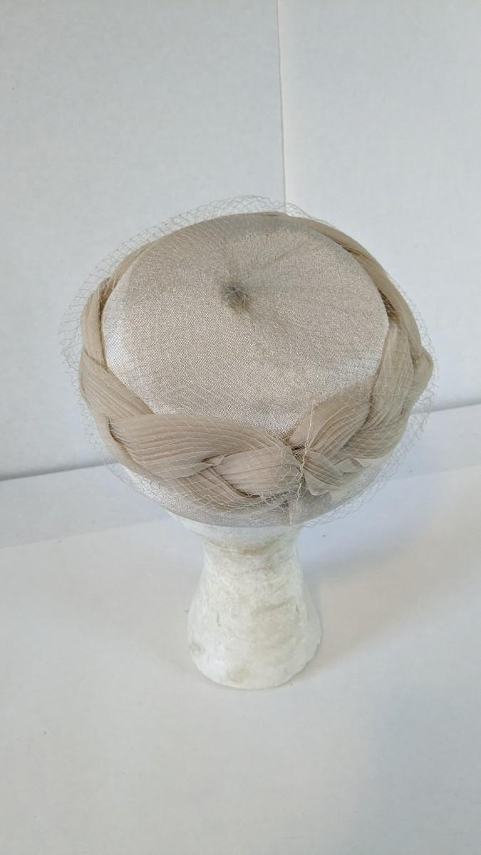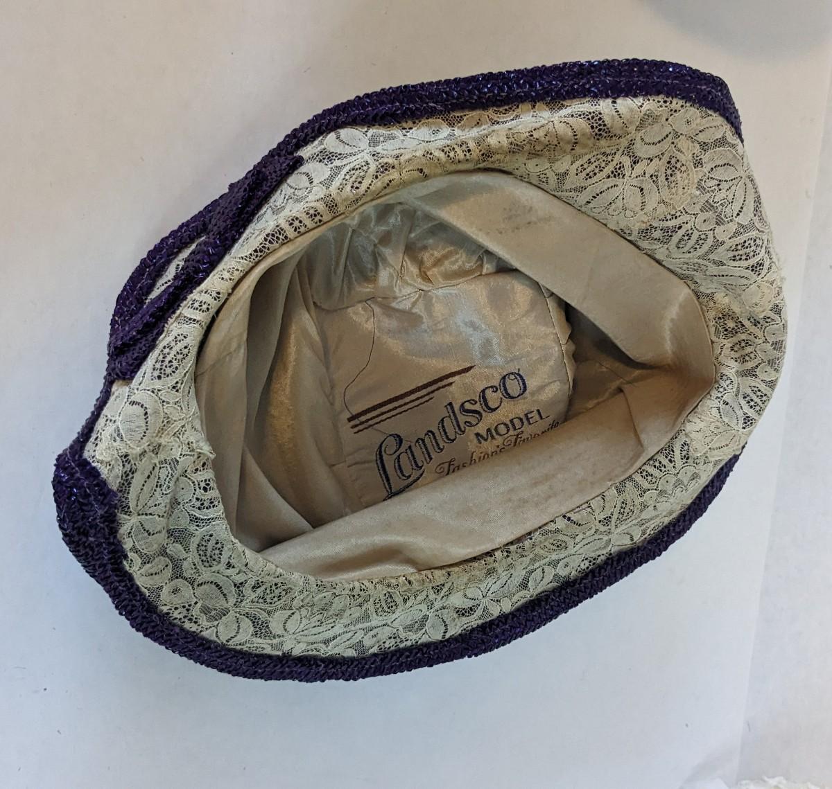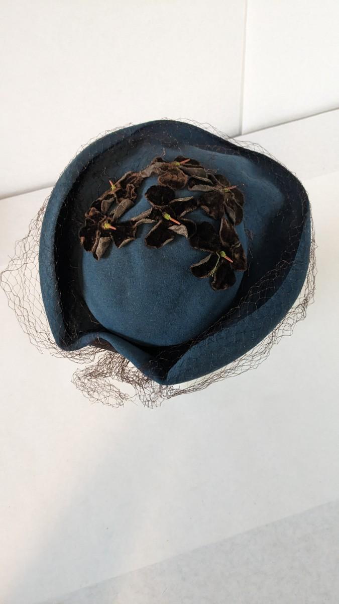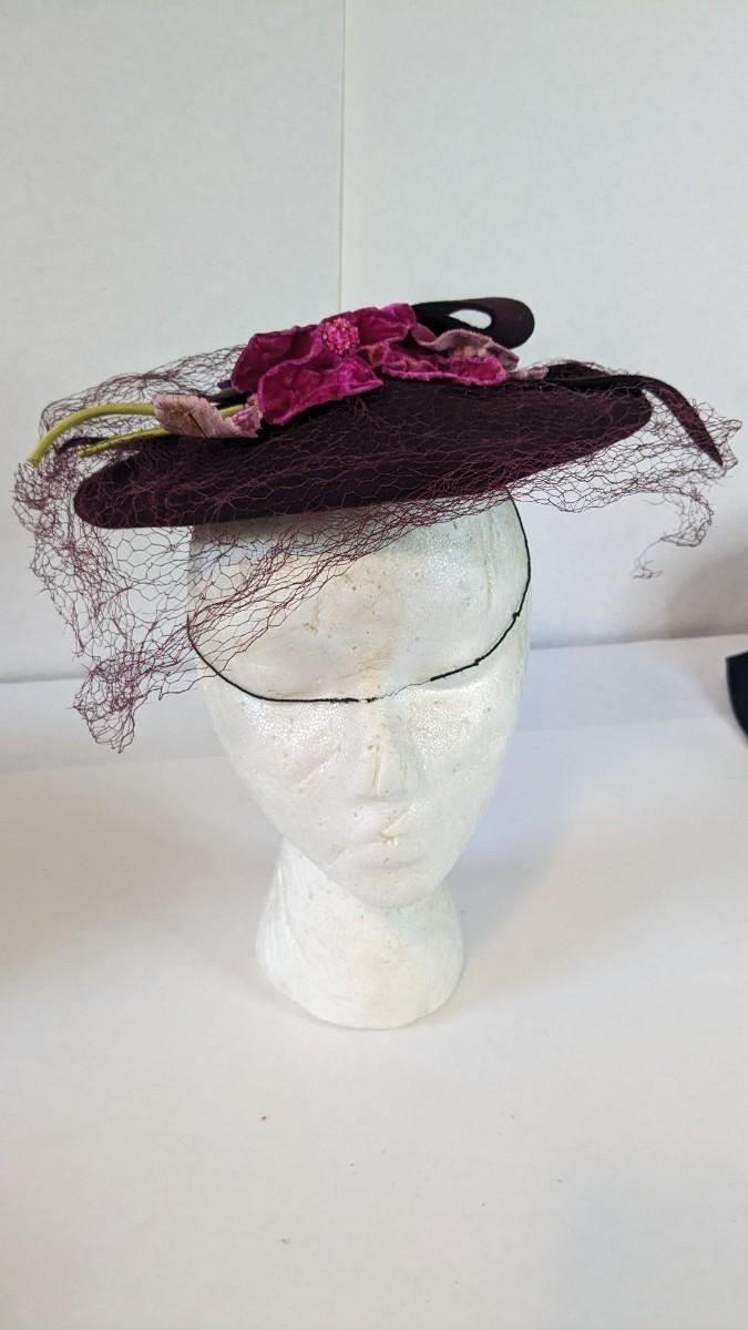 (16) Varied decade and occasion ladies hats, all are in remarkable condition for age showing minor discoloration if any, light wear in accordance to age. Names include Fiskhats, Lasdon, The Lymon Hat, Clover Lane wool, Austelle, Premier, Lansco, Merrimac gardenia hat, Gage Brothers, Town and Country hat, Dover, and Betty Coed. As well as standard union made pieces. There is also a phenomenal Gene Arlette real feather piece. A couple of loose nets are included. Wear is noted as found in photos. Most of these hats were purchased froms Dobbs Fifth Avenue. Extra handling fees will apply. Hat boxes can be found in Lot 79