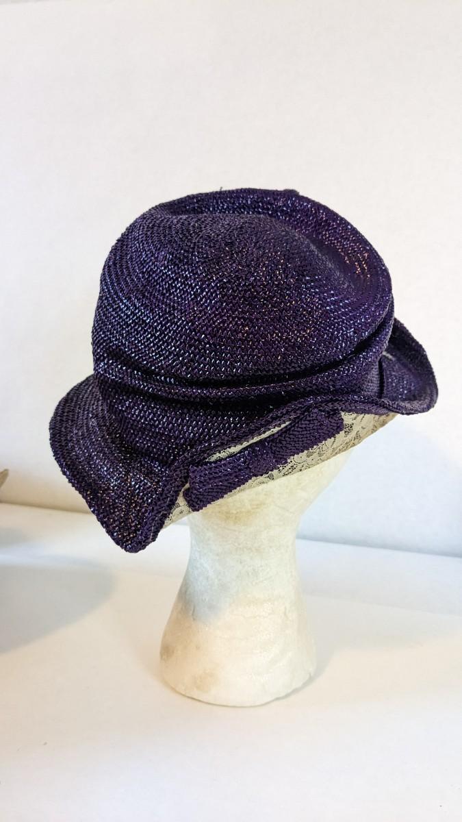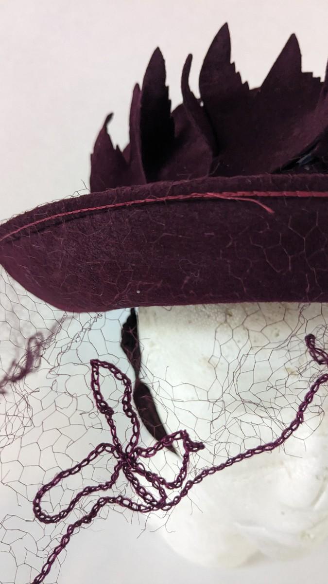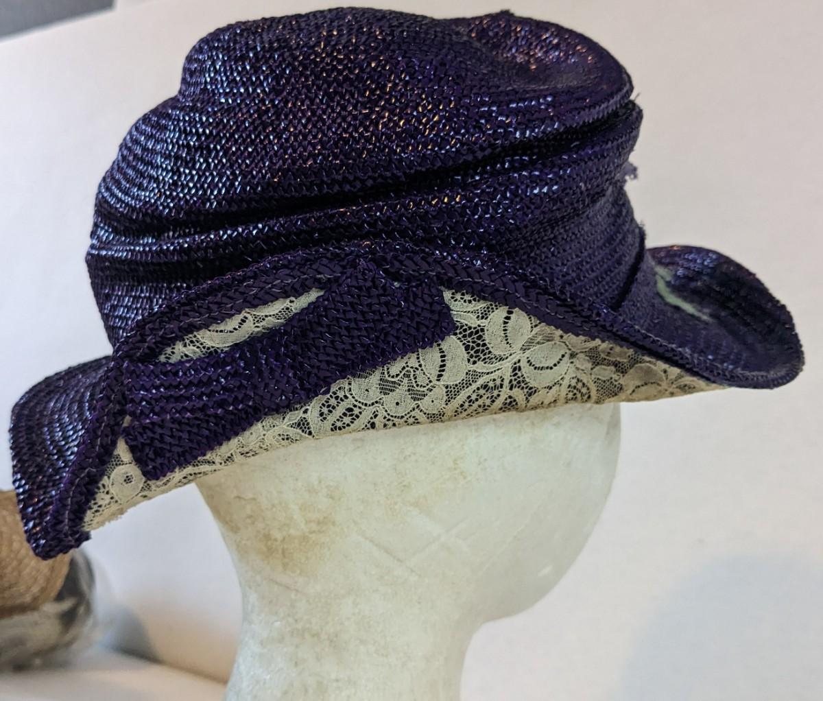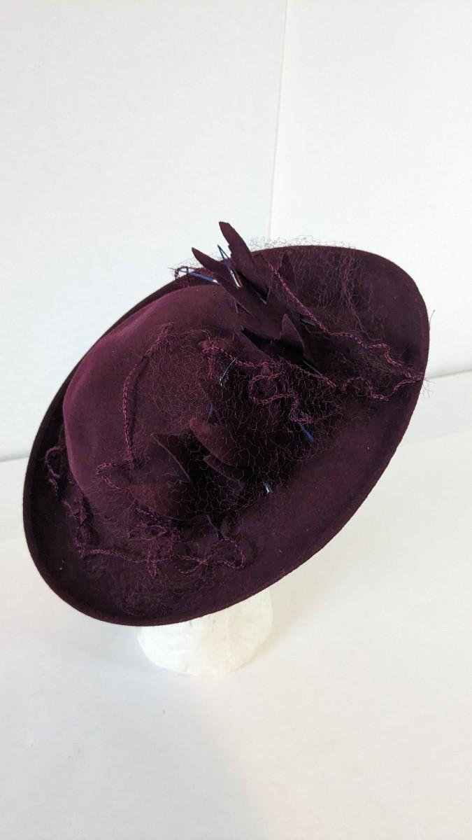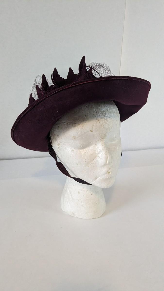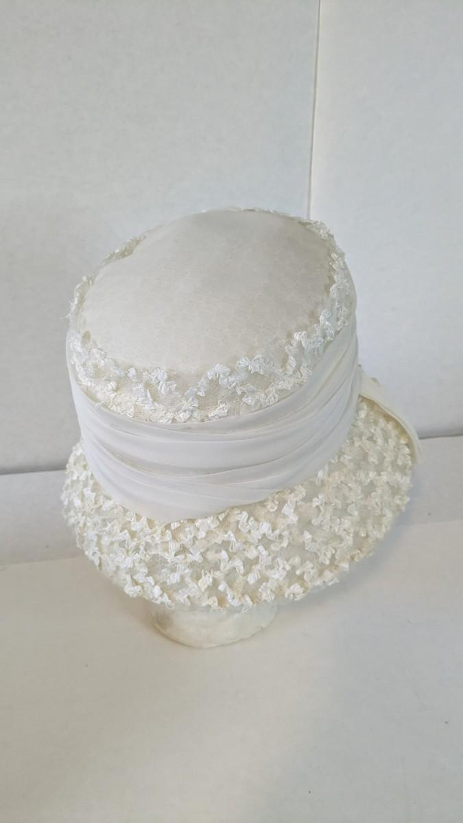 (16) Varied decade and occasion ladies hats, all are in remarkable condition for age showing minor discoloration if any, light wear in accordance to age. Names include Fiskhats, Lasdon, The Lymon Hat, Clover Lane wool, Austelle, Premier, Lansco, Merrimac gardenia hat, Gage Brothers, Town and Country hat, Dover, and Betty Coed. As well as standard union made pieces. There is also a phenomenal Gene Arlette real feather piece. A couple of loose nets are included. Wear is noted as found in photos. Most of these hats were purchased froms Dobbs Fifth Avenue. Extra handling fees will apply. Hat boxes can be found in Lot 79