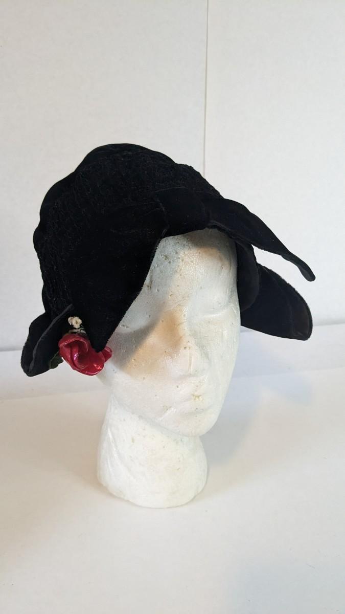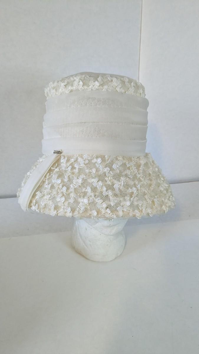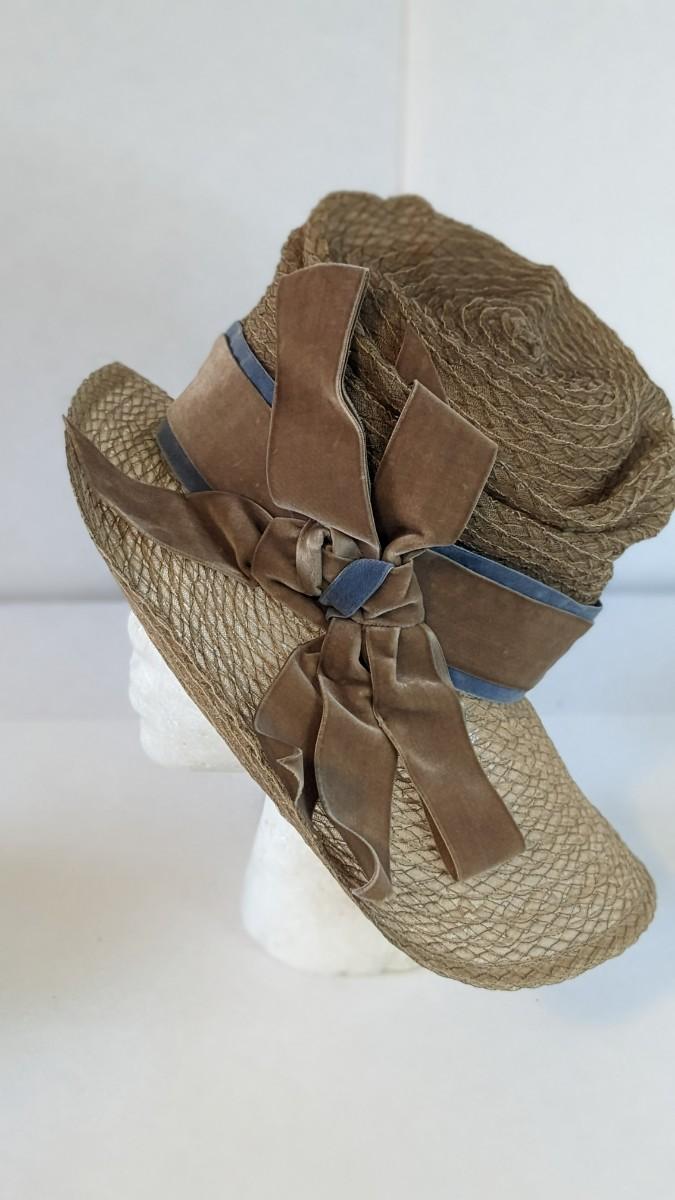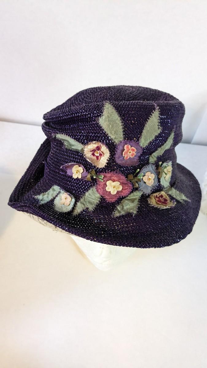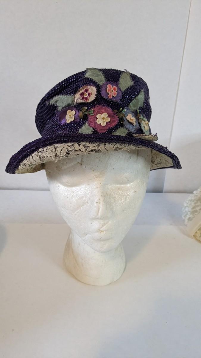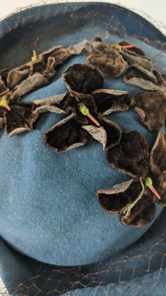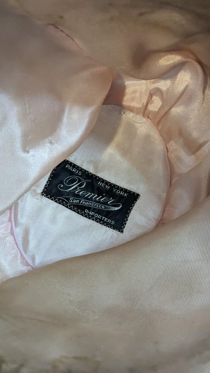 (16) Varied decade and occasion ladies hats, all are in remarkable condition for age showing minor discoloration if any, light wear in accordance to age. Names include Fiskhats, Lasdon, The Lymon Hat, Clover Lane wool, Austelle, Premier, Lansco, Merrimac gardenia hat, Gage Brothers, Town and Country hat, Dover, and Betty Coed. As well as standard union made pieces. There is also a phenomenal Gene Arlette real feather piece. A couple of loose nets are included. Wear is noted as found in photos. Most of these hats were purchased froms Dobbs Fifth Avenue. Extra handling fees will apply. Hat boxes can be found in Lot 79