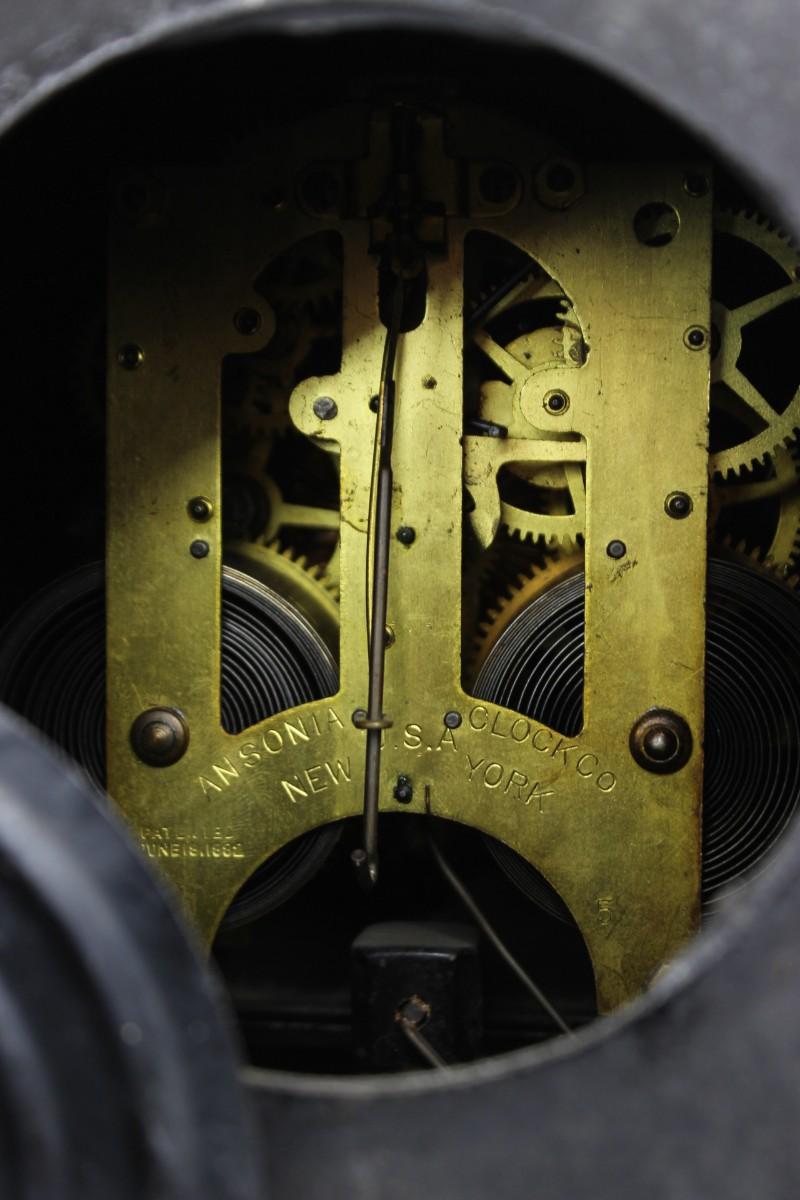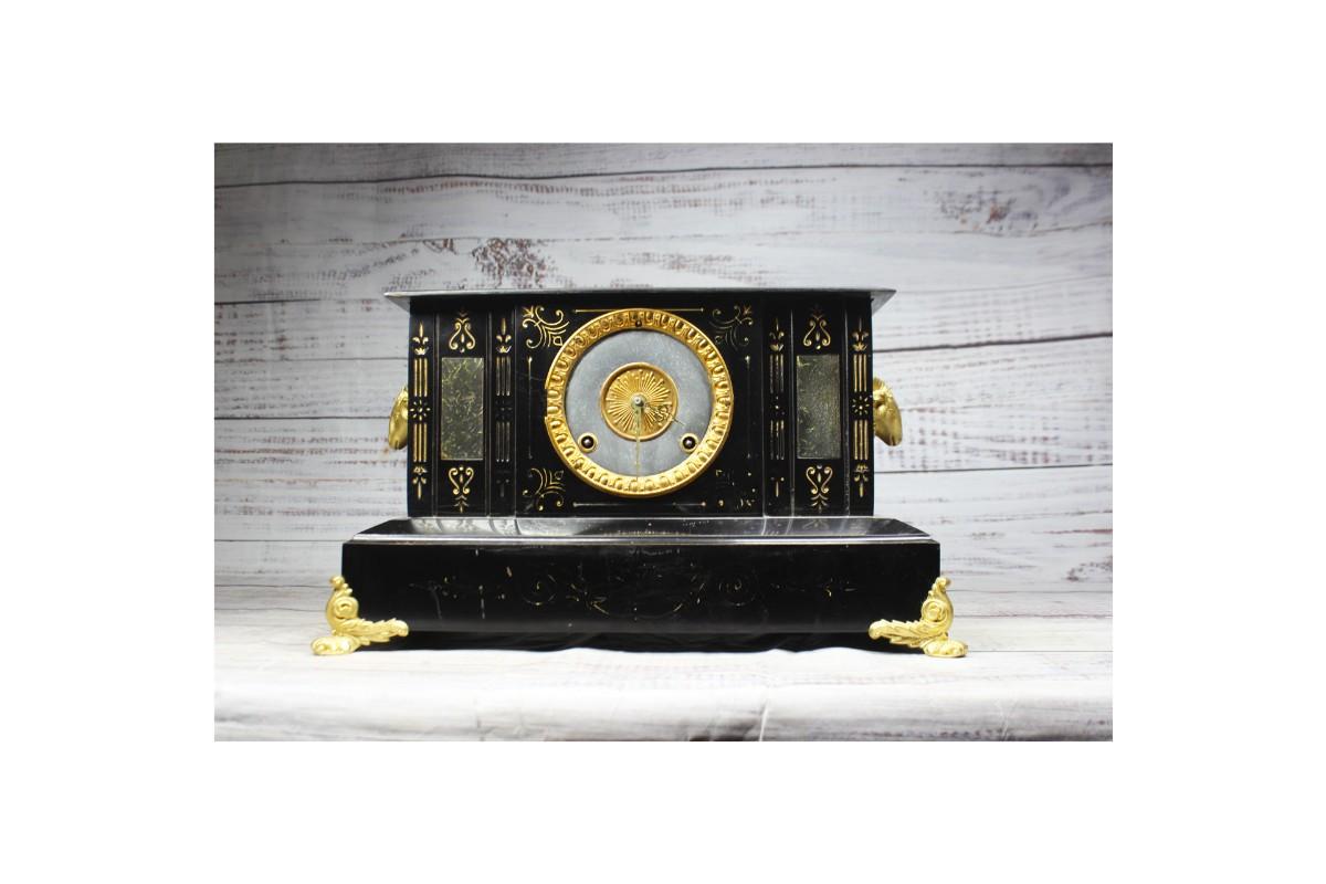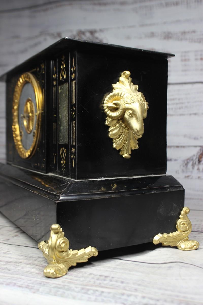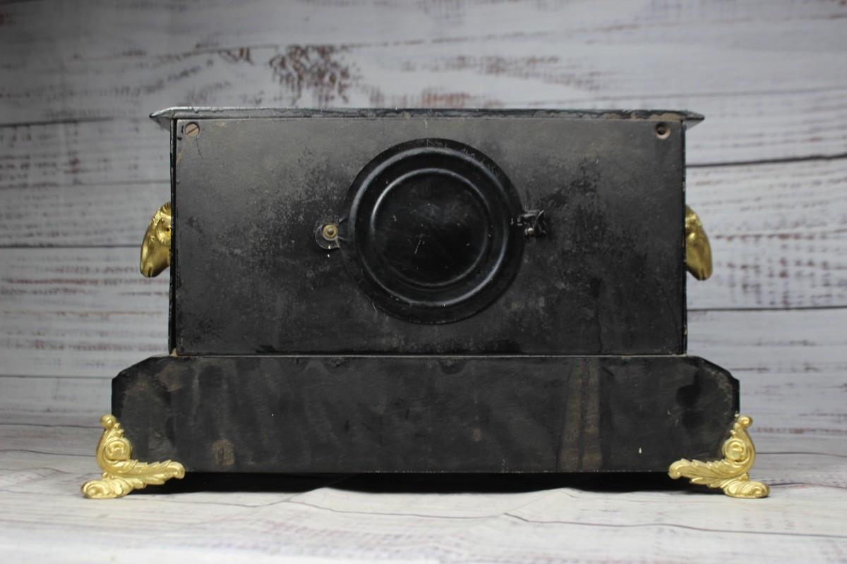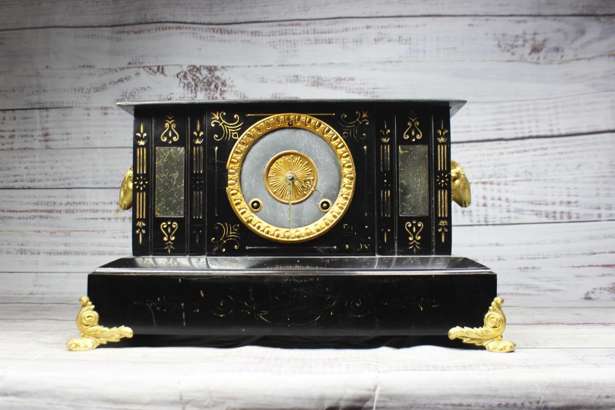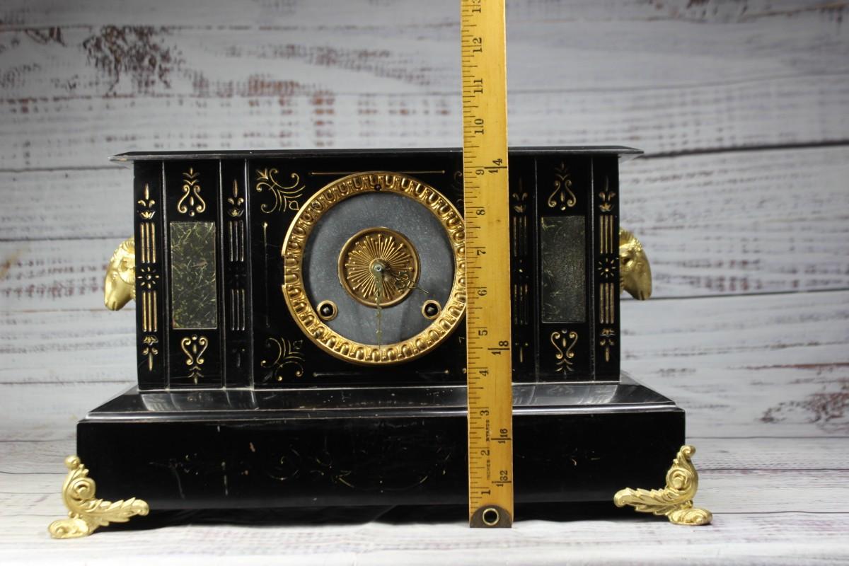 Antique Ansonia Clock Co. Rams Heads Art Nouveau Mantle Clock, the number face to the clock is missing and there is no winding key for the clock. There is no significant damage and is in overall good condition for its age, check pictures for more details and for sizing.