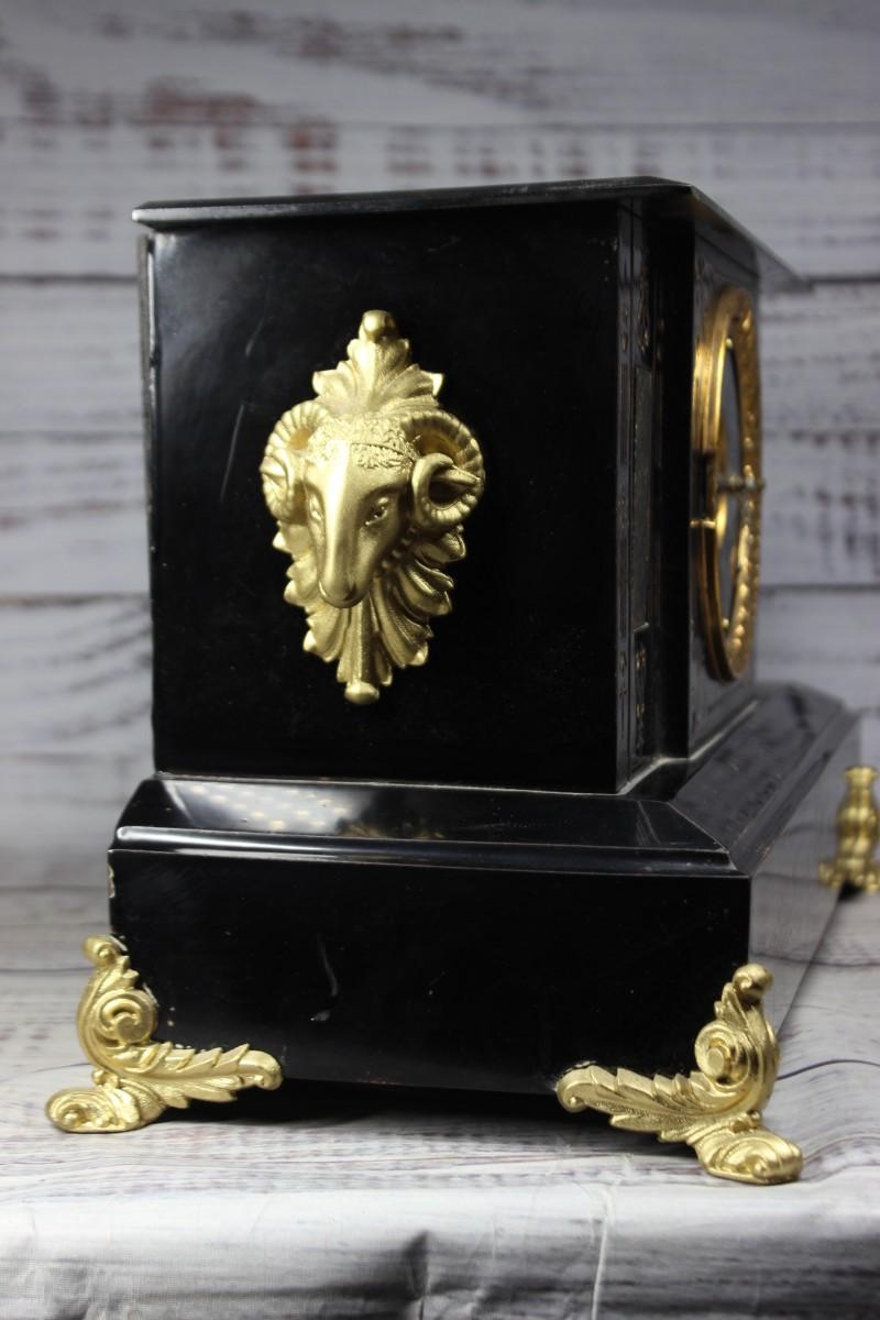 Antique Ansonia Clock Co. Gold Rams Heads Art Nouveau Mantle Clock