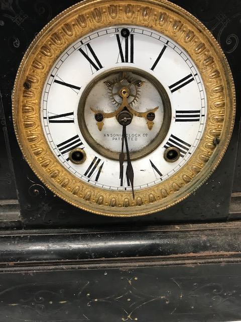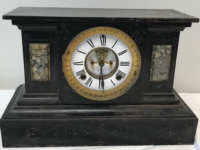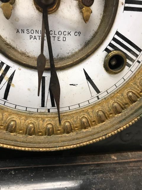Antique Ansonia Heavy Black Metal Mantle clock /Works