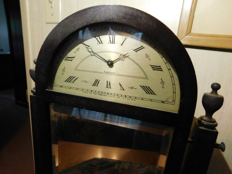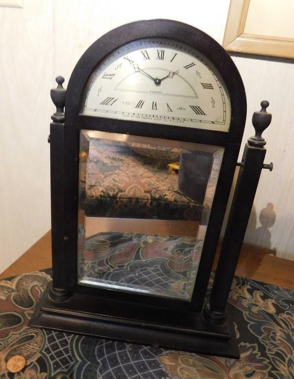 Antique Ansonia Vanity Clock with Beveled Mirror. Working condition unknown. Appearance is good. Unique piece