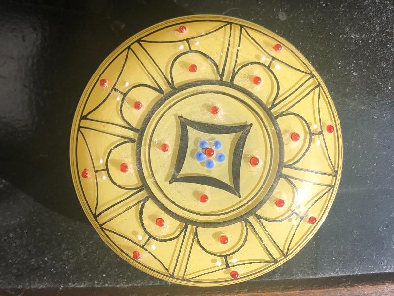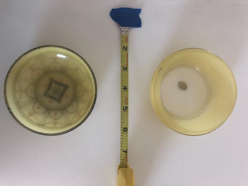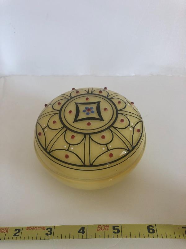 Czechoslovakia Glass hand painted powder receptacle. No cracks or apparent damage.