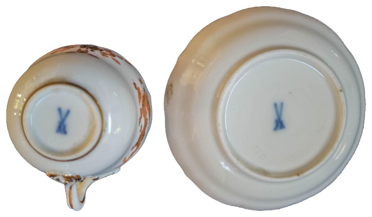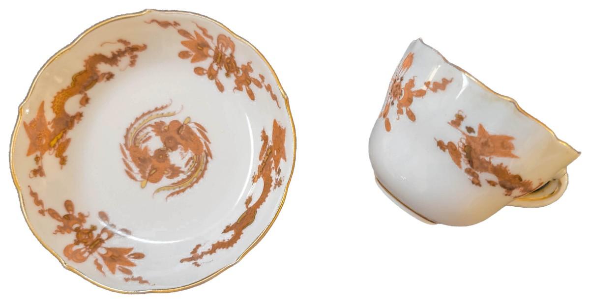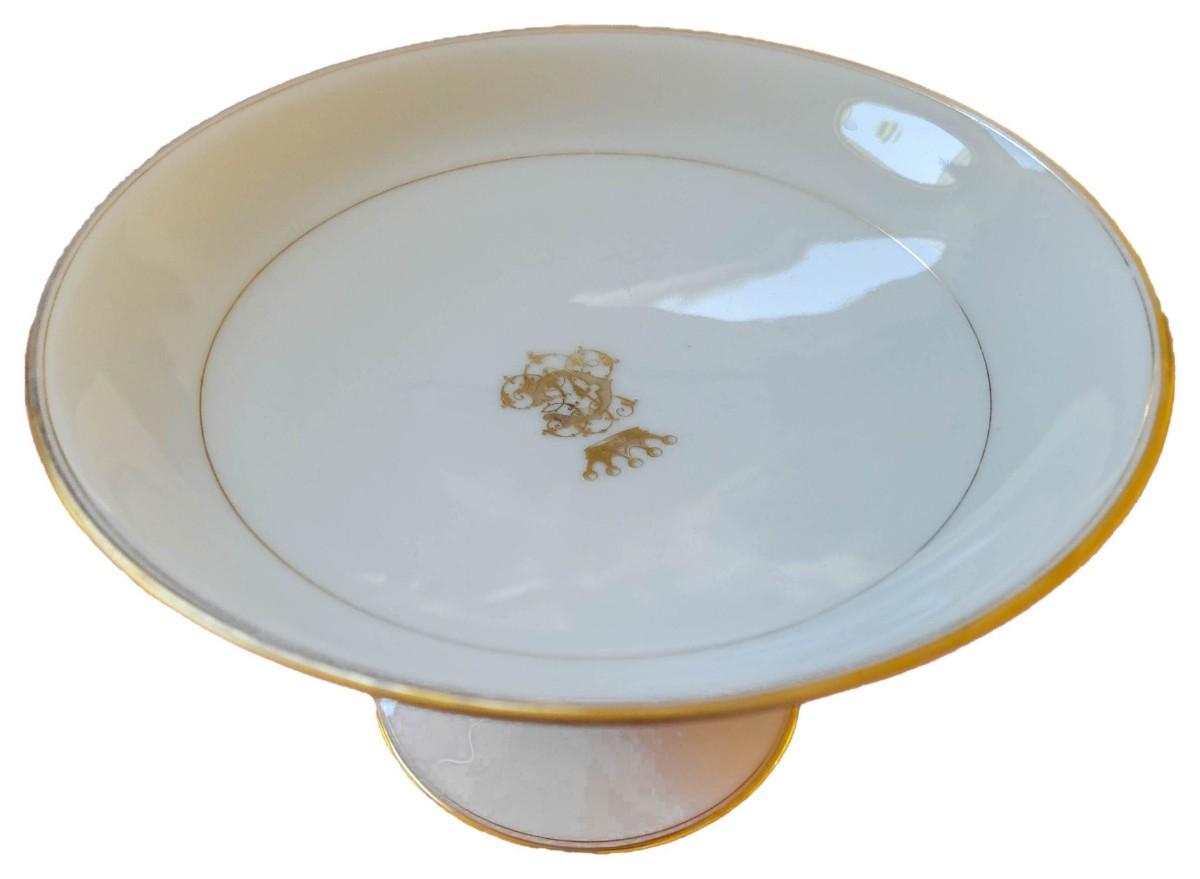 In fine conditions, superb gold and red decorated, marked GL in cursive letters, stamped Made in France. Measures 9 1.2" X 5".