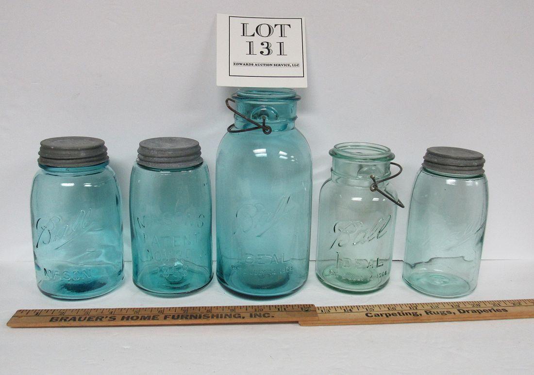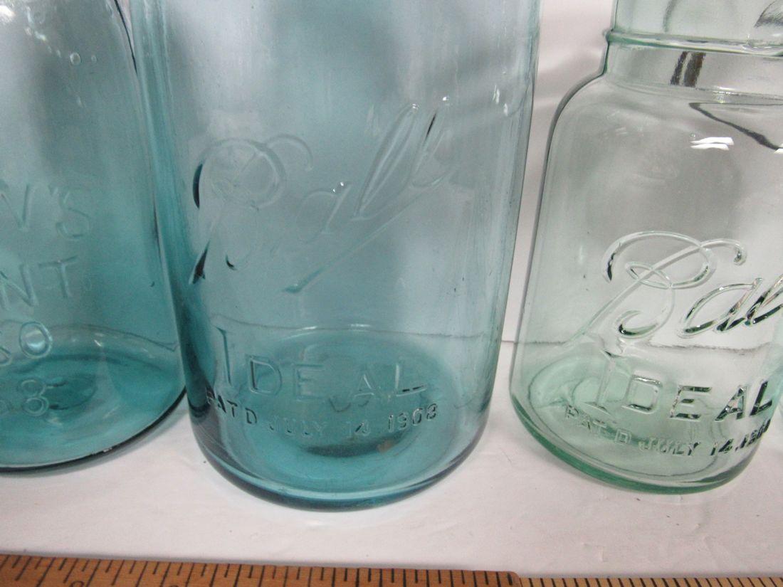 Antique Aqua Canning Jars, Lighter and Darker, Pat 1858, Pat 1908