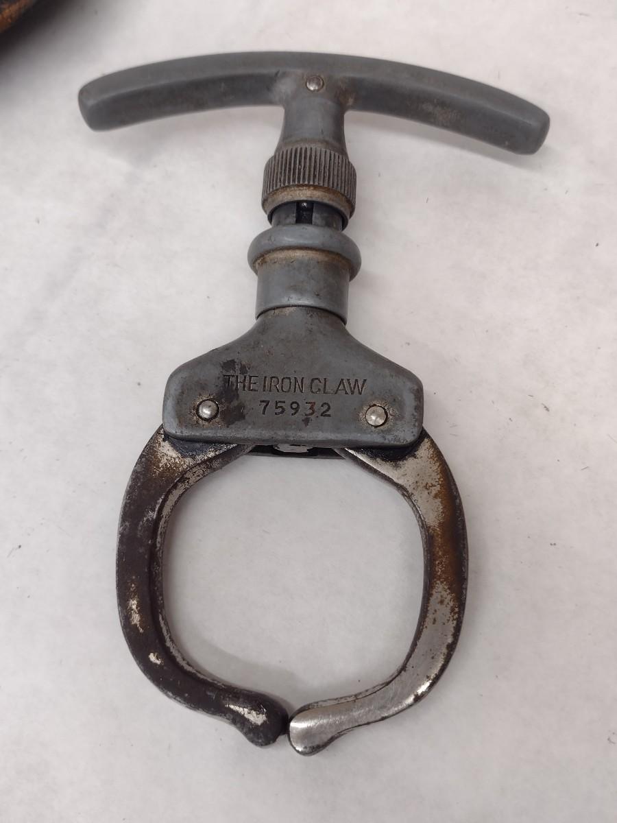 Antique Argus 'The Iron Claw' Handcuff with Leather Pouch