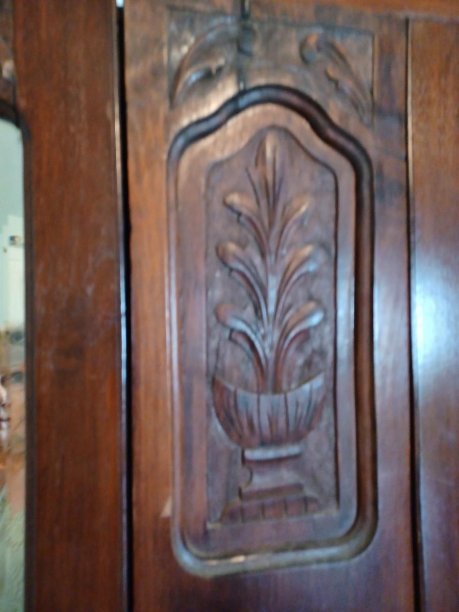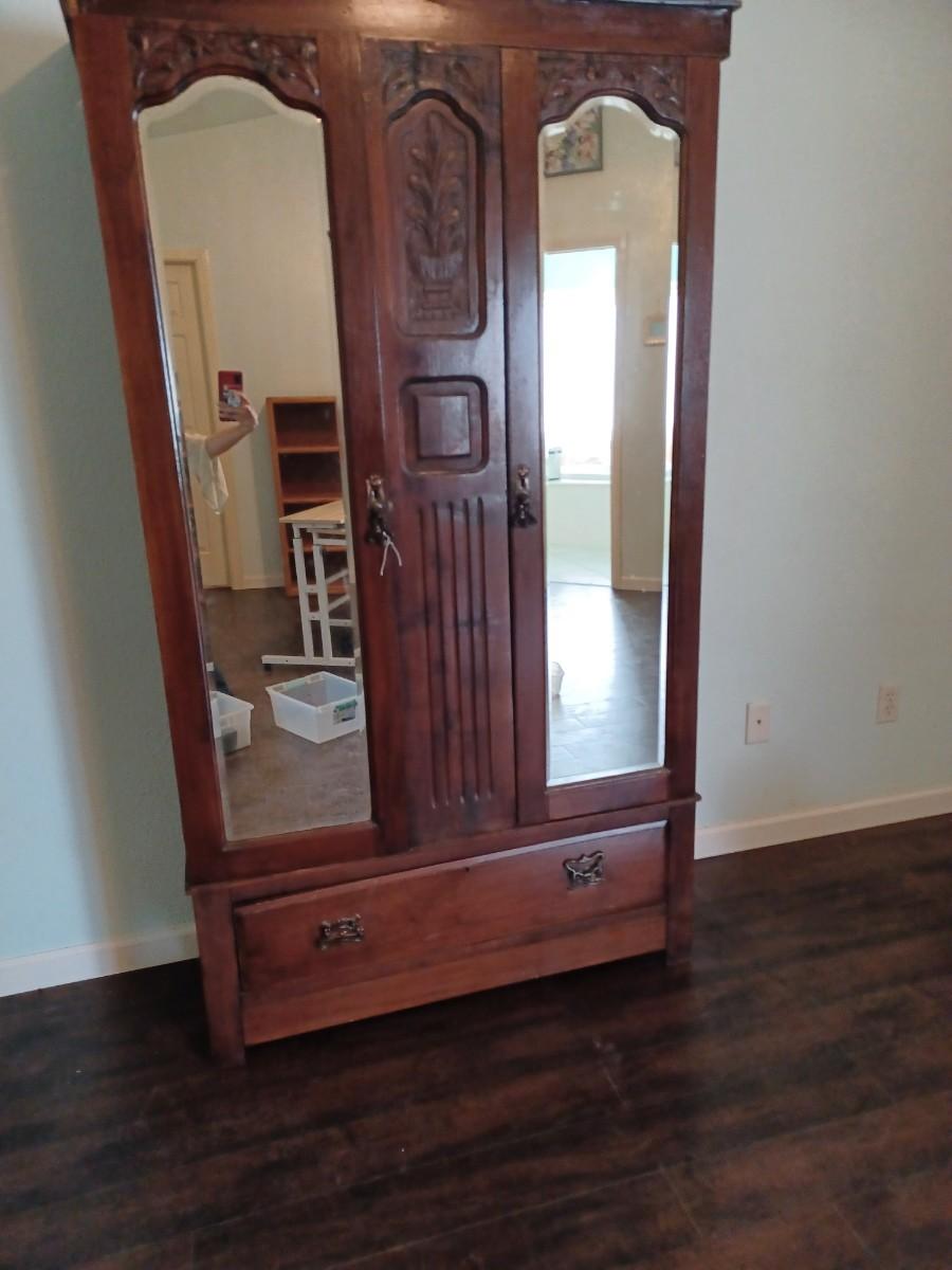 ANTIQUE ARMOIRE W BEVELED MIRRORS