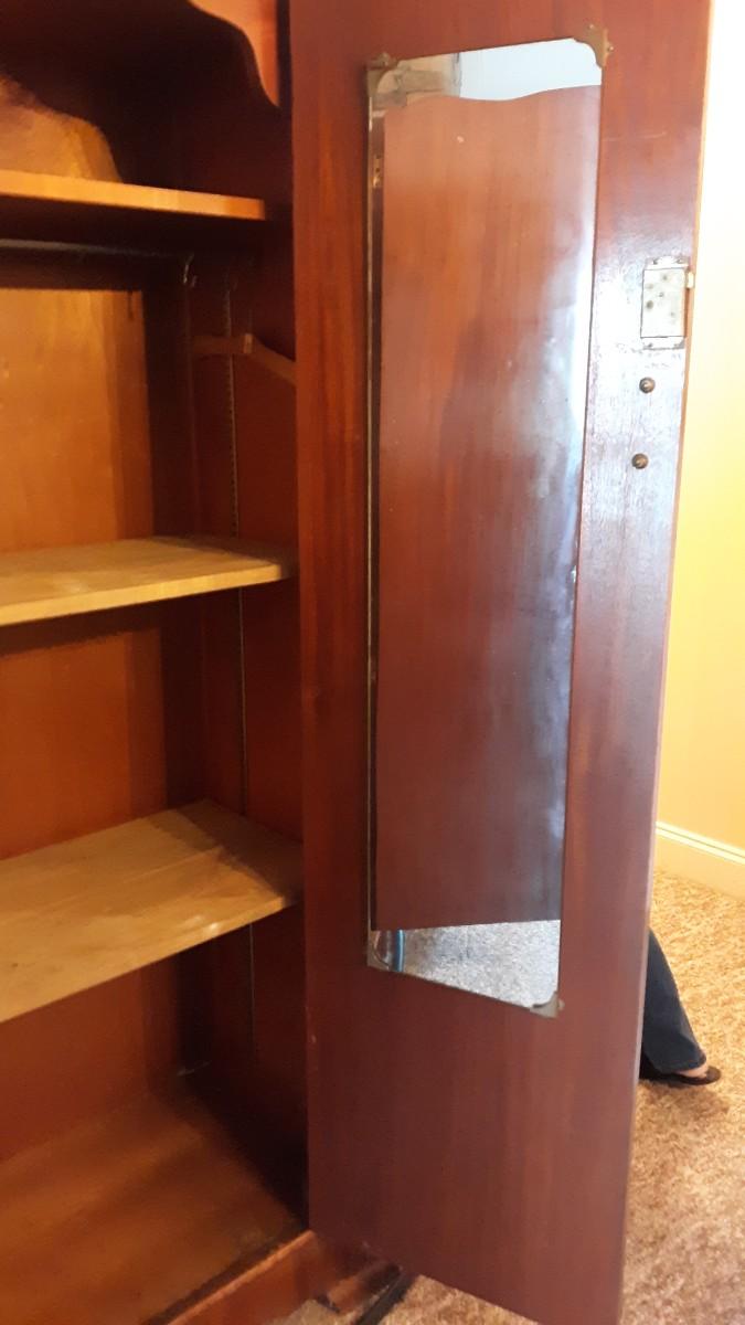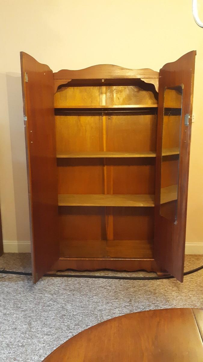 Antique armoire with custom-made shelves. A nice conversation piece. Use for storing shoes, clothes, valuables, etc.
