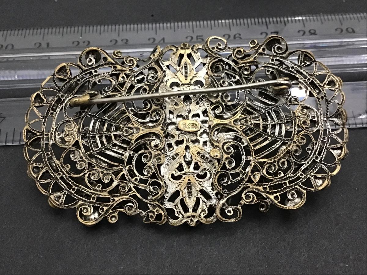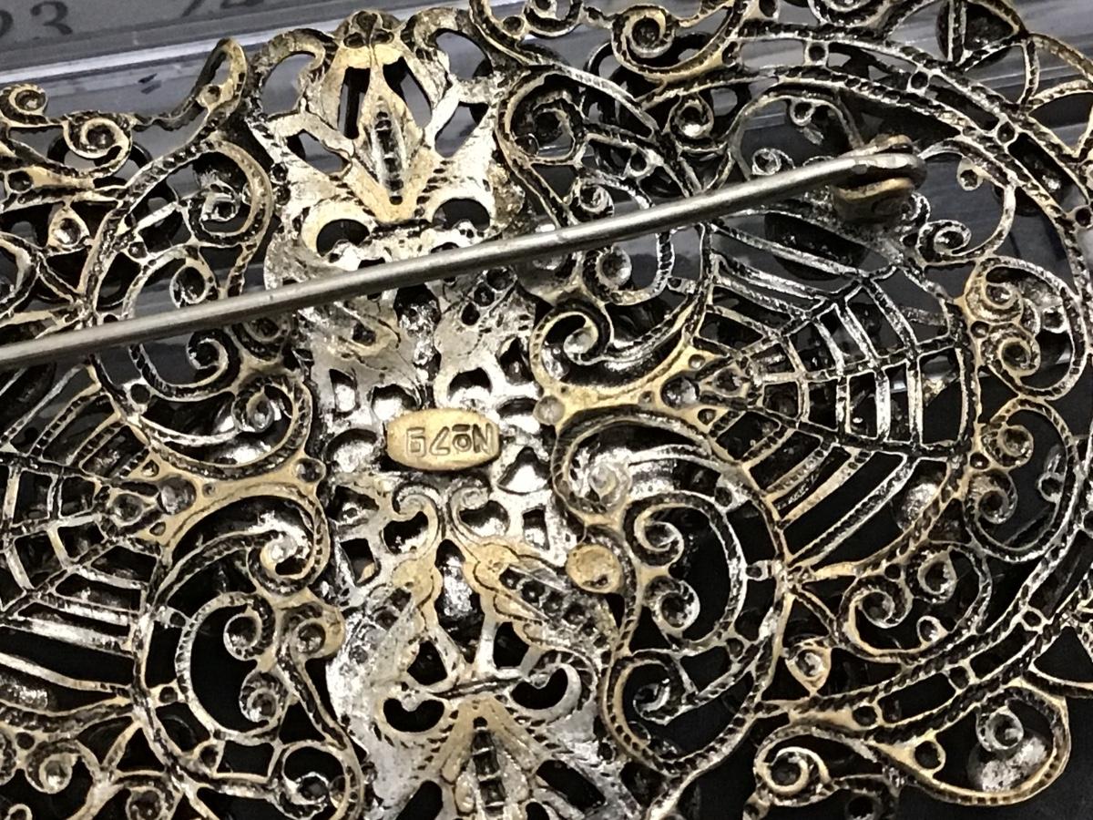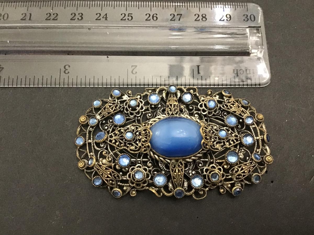 Antique Art Deco Filagree moonstone Blue Glass Numbered Large