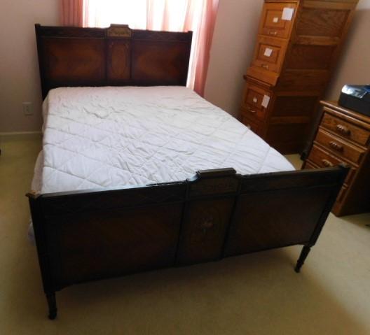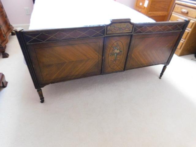 Antique Art Deco Full Size Bed Frame and Mattress Set 57"
