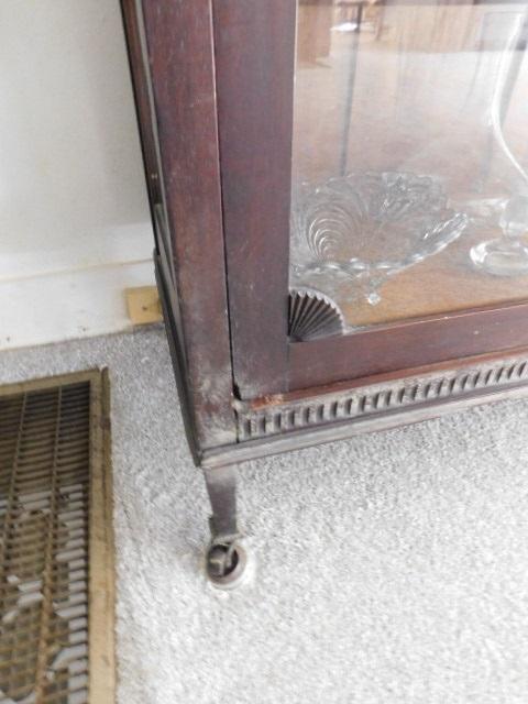 Art Deco Glass Front Display Hutch 36"x70" does not have key. Door is heavy so does not shut without lifting up. Some scratches and wear to the finish