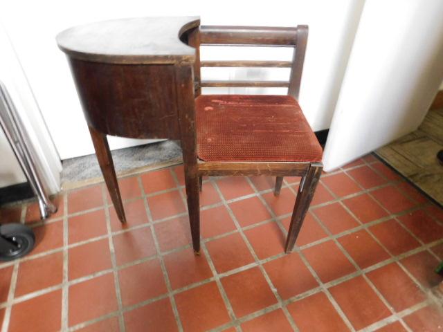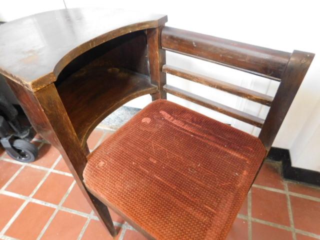 Antique Art Deco Gossip Phone Bench with Upholstered Chair 29"x16" may have wear or scratches to the finish. Nice find