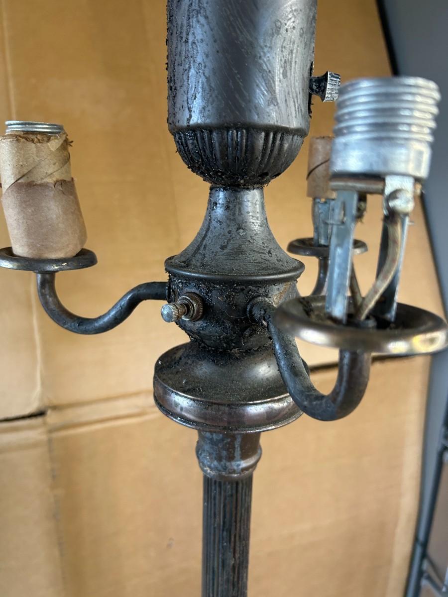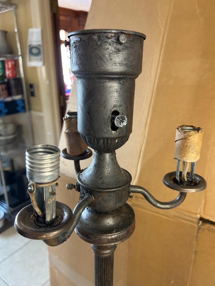This piece came from a defunct movie prop house and is a restoration project. We did not attempt to test the lamp, given its age. Artistic Lamp Manufacturing Company Circa 1940s from New York.