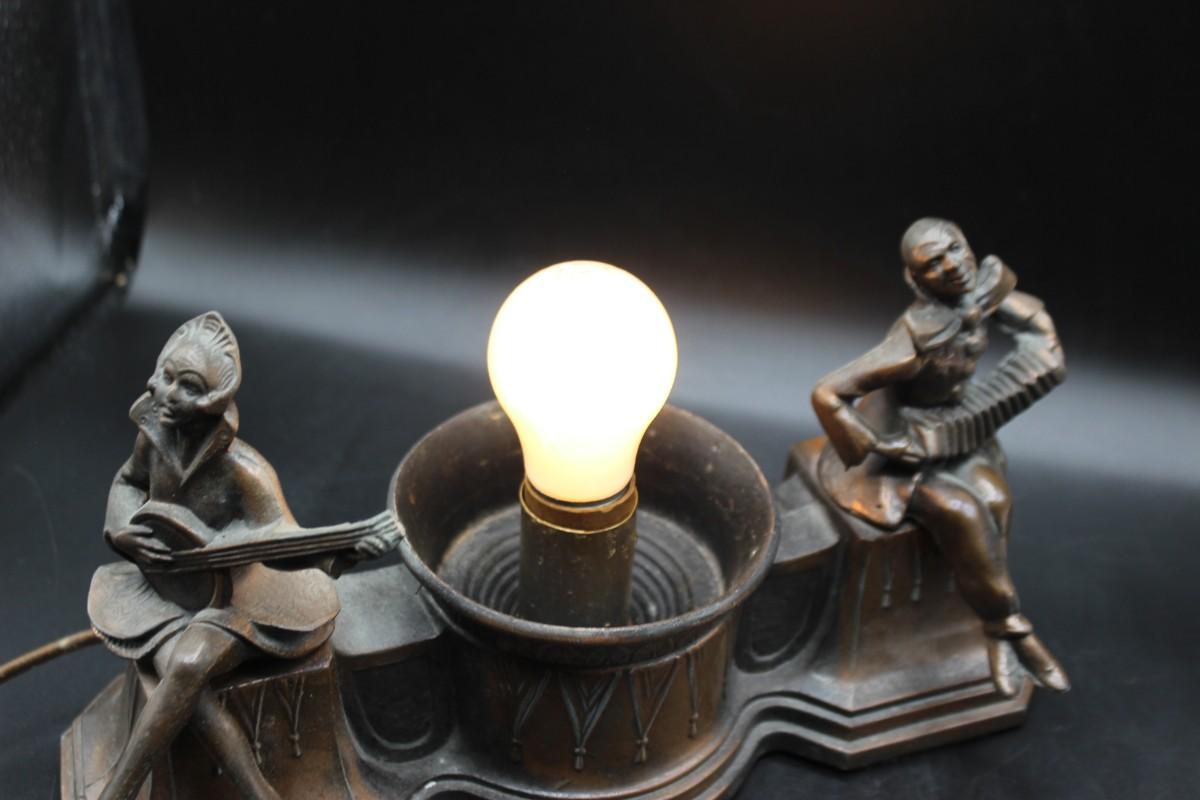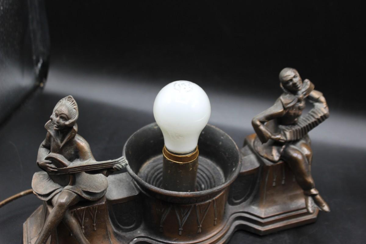 Antique Art Deco Harlequin & Pierrot Bronze Metal Cast Radio Lamp